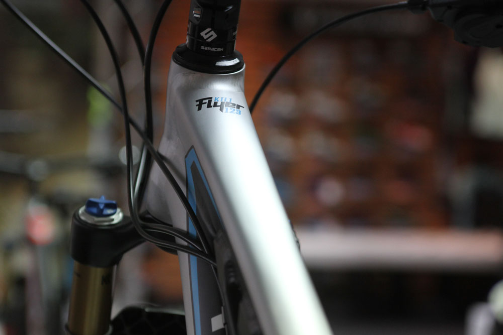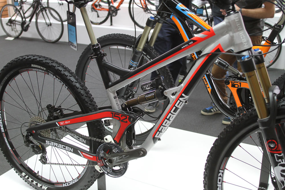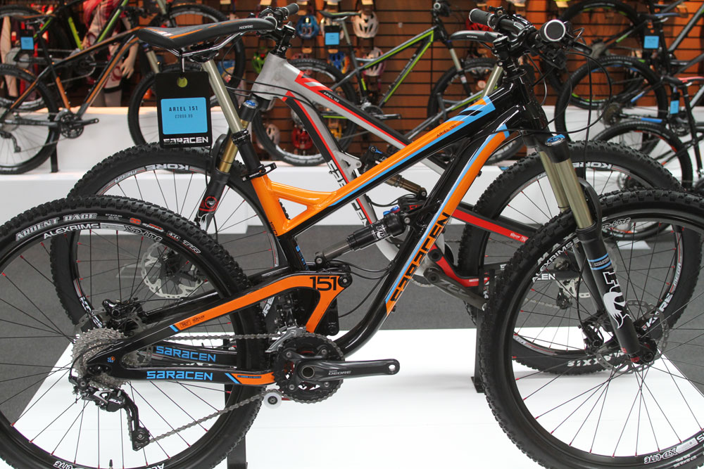 Saracen’s long-running Kili Flyer marque also gets the 27.5in makeover. With 120/120 travel and prices running from £1999 to £3199, the bikes are aimed at being more all-round XC and trail riding bikes.