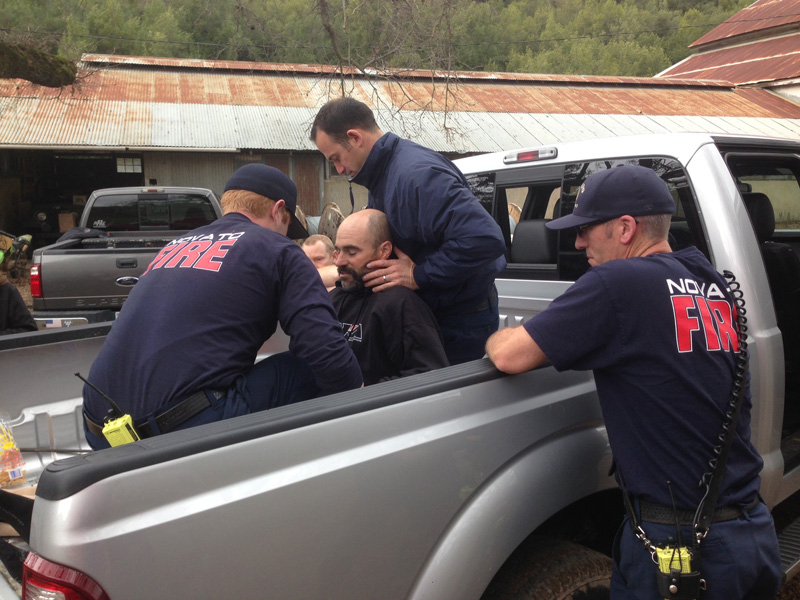 But no one expected what happened next. After standing the branch upright in an attempt to push it off the trail, it “stalled out.” Then with one final push, the 20-foot tree limb fell with the thickest, supporting end landing and pinning Weir to the ground at the waist. “Like the Wile E. Coyote, I ran in the tree’s shadow ’till it smashed me to the ground,” he said.