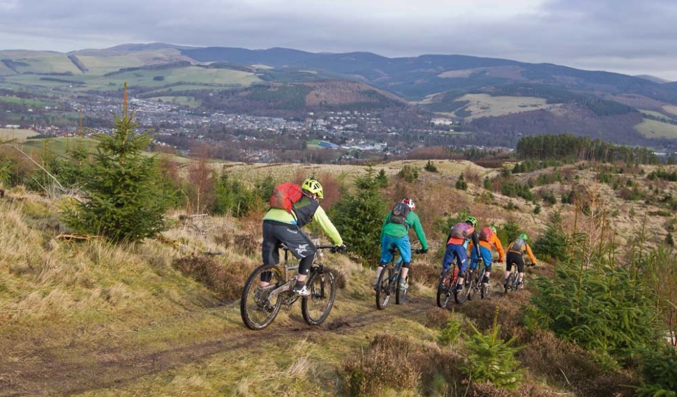 Riding down Cadmuir over looking Peebles