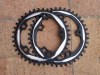 Teeth are offset to centre the chain when used with standard compact (110BCD) cranks. Chainrings running from 38t-46t (even) will be offered and ship with mid-length bolts and backers to ensure that everything comes together nicely and solidly. The chainring is designed to mesh with existing 10s and 11s SRAM road chains- no proprietary action here.