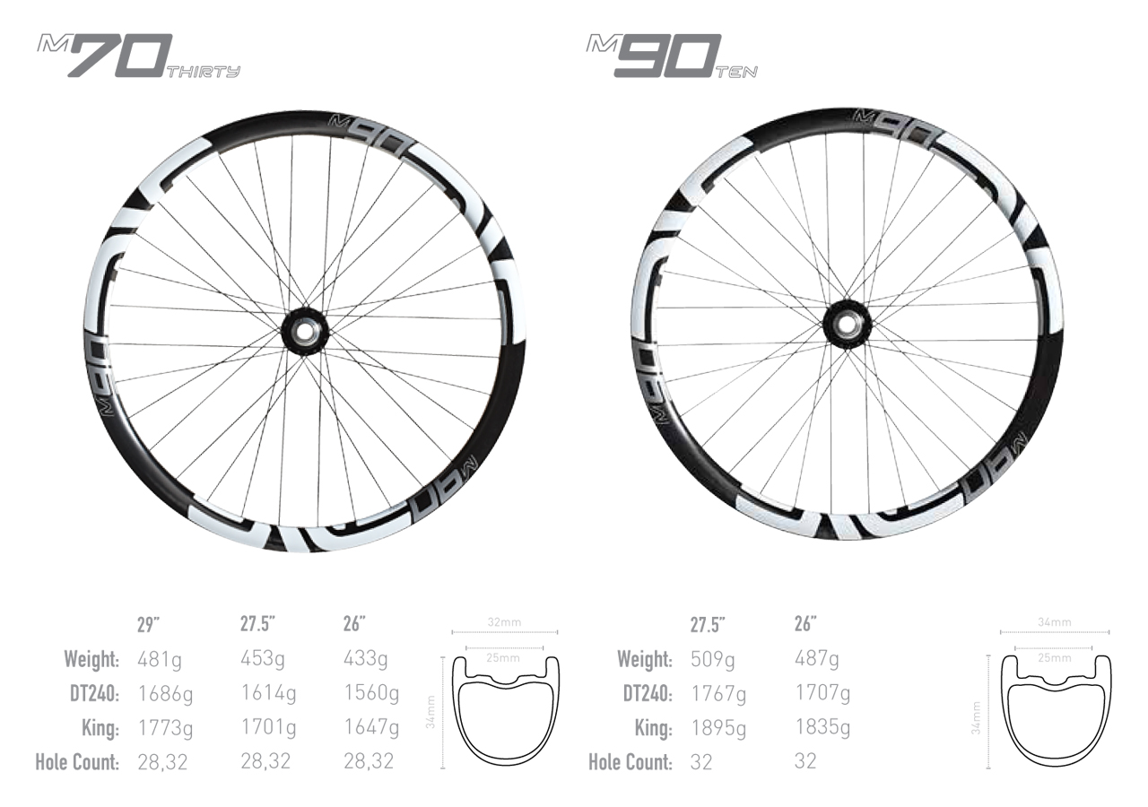 Leaning toward enduro and all-mountain, the M70Thirty allows for a stout wheel at climbing-friendly weights. More finesse-oriented riders will be able to get away with this for downhill racing as well- bruisers would do well to stick with the M90Ten.
