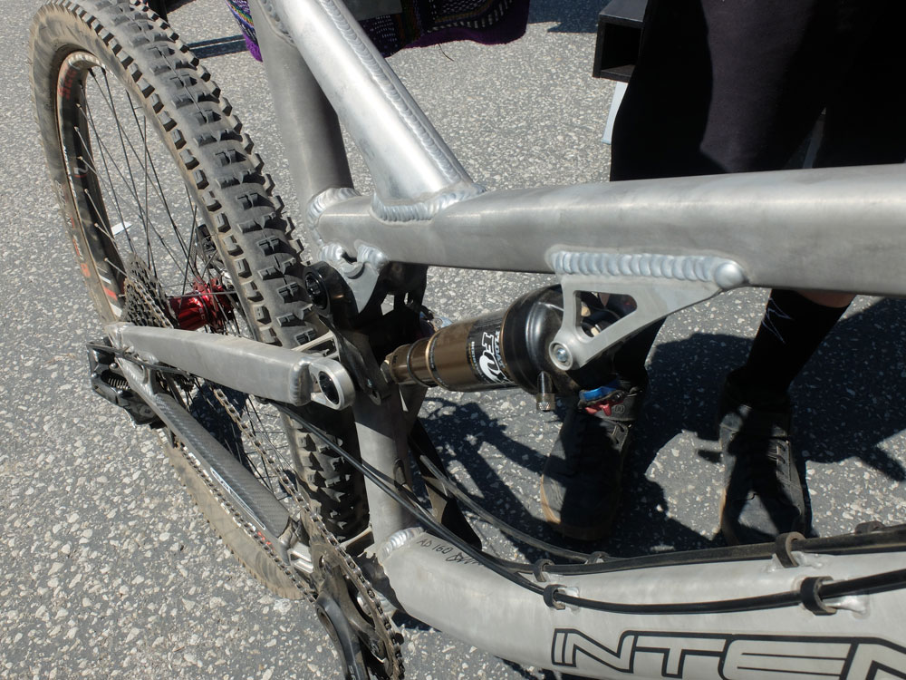 Now it just so happens that MBUK journalist, Andrew Dodd, was after a new bike and wanted to see if anyone could make his dream machine. We’ve already seen how Nicolai had made a machine for Mojo’s Chris Porter  with a super-long wheelbase. Doddy was after that kind of thing, so he asked Jeff at Intense, who was happy to oblige. With the tubes taken off the shelf and a couple of bits poached from existing assembles, Steber was able to weld up the frame in a day, leave it to heat treat overnight and Doddy was riding it the next day. This is the kind of thing that Intense is keen for the world to see – that sort of ‘Hmm, let’s try this approach’ that you can do when you can prototype in-house.