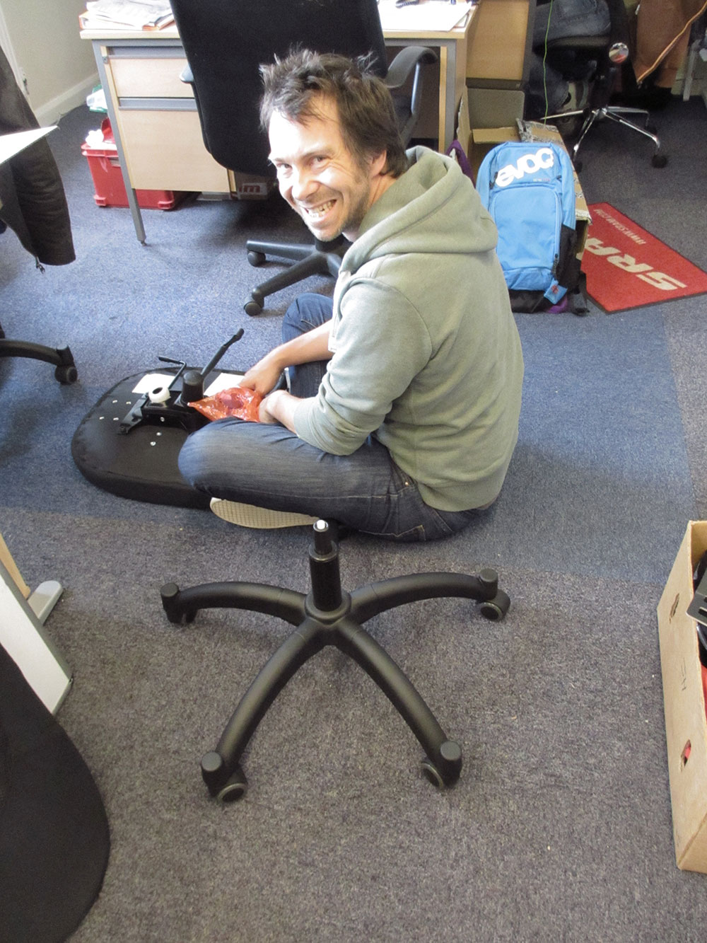 Barney puts his best assembly-face on for one of our new office chairs. We’re having the office re-decorated and we’ve got a load of new furniture too. It’s still not quite a gleaming tower of chrome and glass, but we’re slowly getting there.