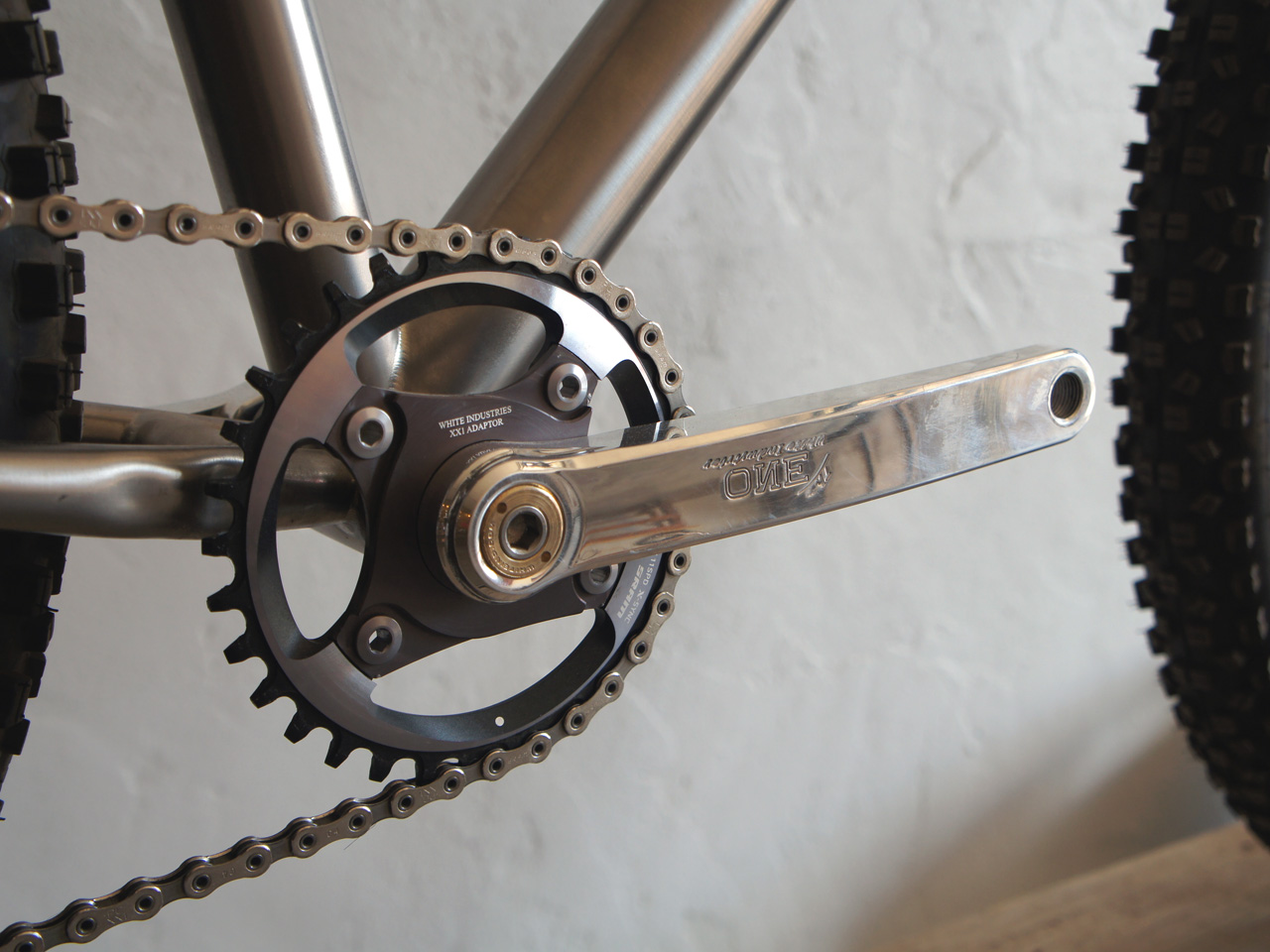 While some operations are outsourced to (relatively) nearby Phoenix, Arizona, the Durango facility is powered by seventy-eight rooftop solar panels (seen just below the clifside trail above). Jeff and Wendy are dedicated to domestic and sustainable production, with a strong desire to remain flexible and to keep jobs in the first world. The company’s builds reflect that ethos, with most deliveries featuring components from Thomson, White Industries, and Industry Nine.