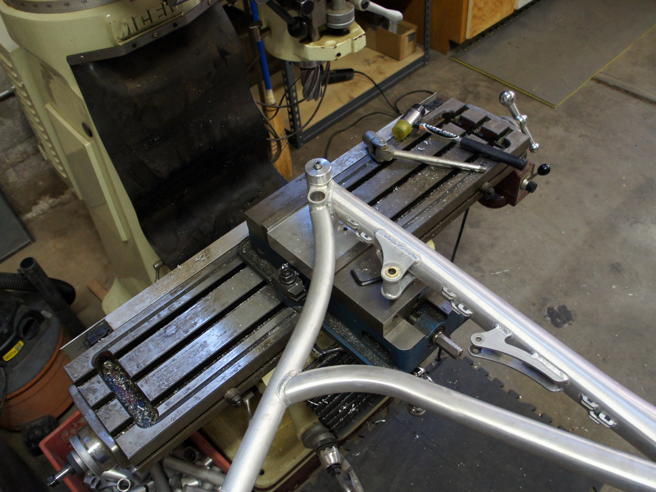 Rows of Durango bikes and frames line the walls – from freshly welded Moonshine enduro frames to well-ridden prototypes – while bikes from Jeff’s past as a semi-professional downhiller provide historical context. A vertical mill machines bearing seats into raw frames and several fixtures arrange custom-formed Alcoa tubes for welding. Nearby, Jeff & Wendy’s sixteen year-old son helps to prepare a customer’s frame for delivery while saving up for his first car.