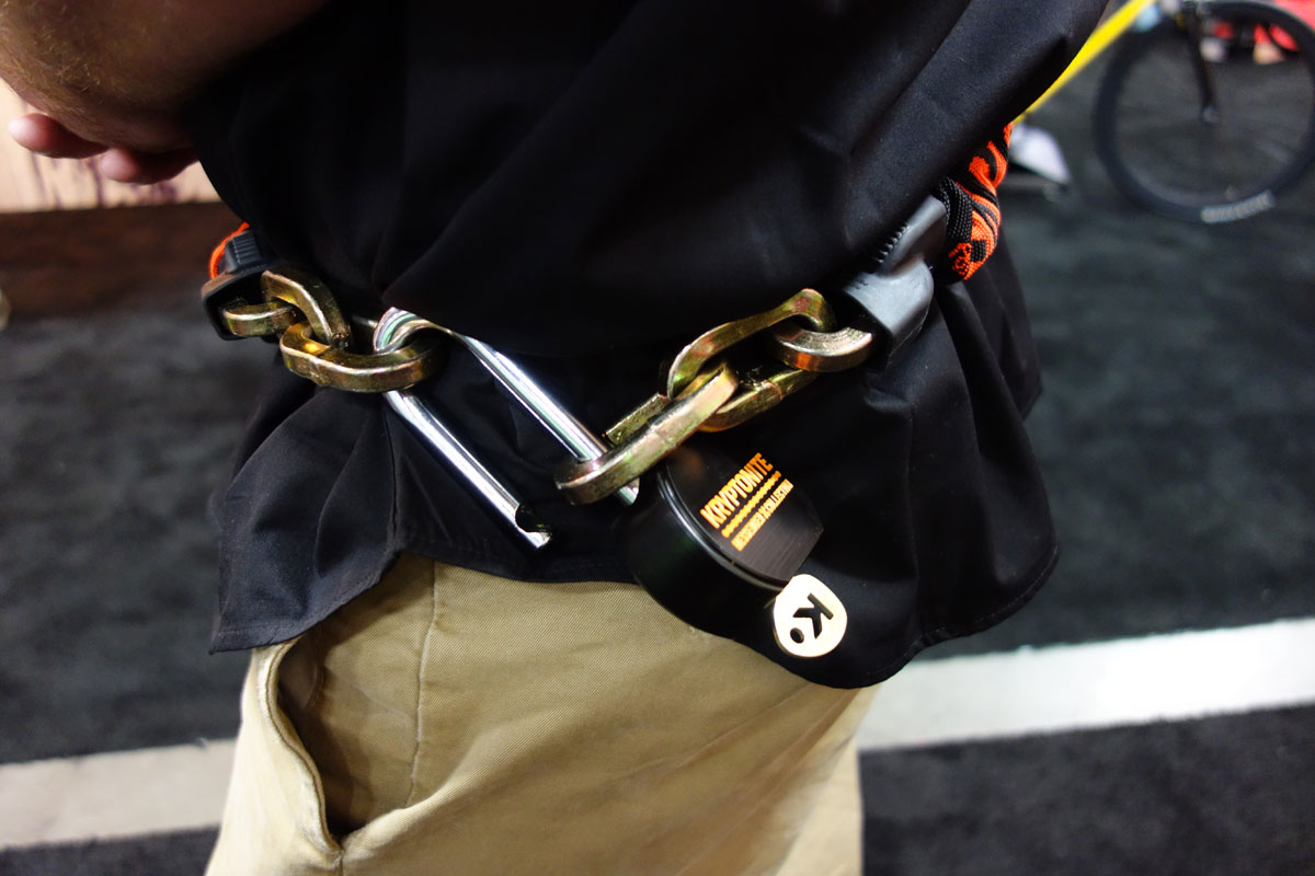 The Chain and Moly lock was popular with messengers for several reasons. The chain lock can be carried around the waist and the previous incarnation of the lock allowed it to be carried with the padlock open and the key in place for quick deployment. With the advice of the messengers, Kryptonite has brought this feature back.