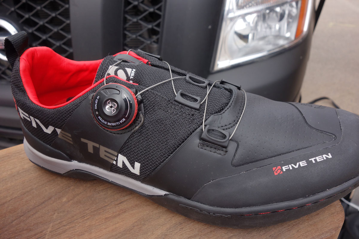 No, not the Five Ten booth, but the BOA one. Here’s the Five Ten Kestrel with a BOA system. A very neat and low profile way of doing your shoe up. Did you know that BOA offers a lifetime warranty? They’ll send you a service kit if your BOAs stop working.