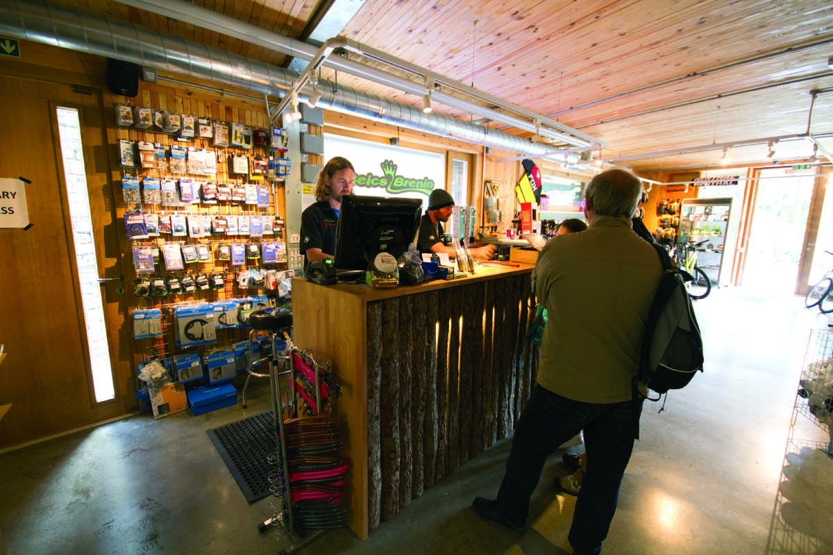 Behind the scenes, though, things were happening. New trails need funding and that funding takes time to apply for and secure. By the time that Andy Braund, the current Coed y Brenin Ranger, started work in 2009, a year’s worth of work had already gone into planning the next chapter. It was recognised that the area desperately needed a blue grade trail and a really good skills area. The tiny bike shop, Beics Brenin, needed more room. The mechanics had to literally unpack their workshop every morning and spread hire bikes and incoming jobs outside in order to have room to work. An extension to the existing centre was planned, with meeting rooms and the kind of spaces that council officers like justifying, but it would come with a large new downstairs area for a bike shop too.