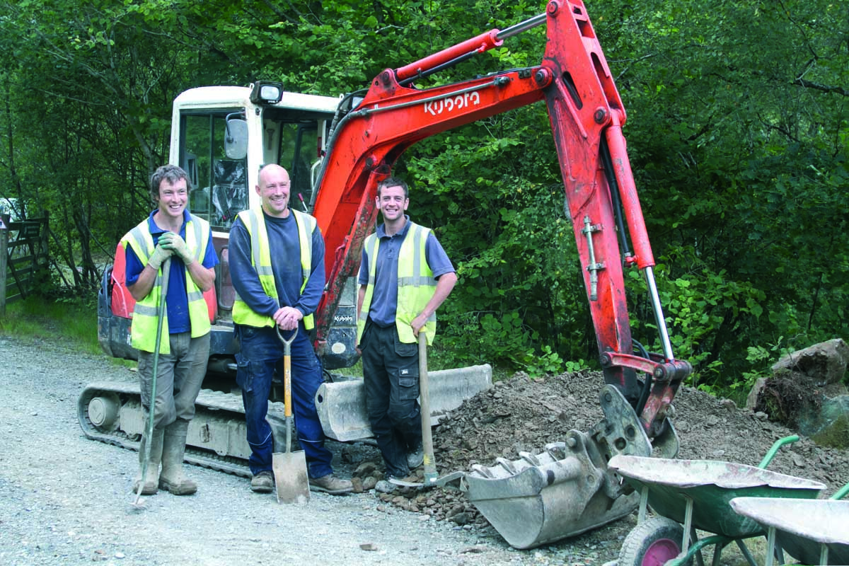 Many of Coed y Brenin’s early trails were initially built with raw manpower; sometimes RAF officer-training exercises, sometimes volunteer groups, often BTCV (British Trust for Conservation Volunteers) groups. Work could be painstakingly slow, especially given the boggy (and midgey) nature of the forested hillsides. By contrast, the new generation of European-funded trail centres were able to use contractors with machines, greatly speeding up the trailbuilding process.