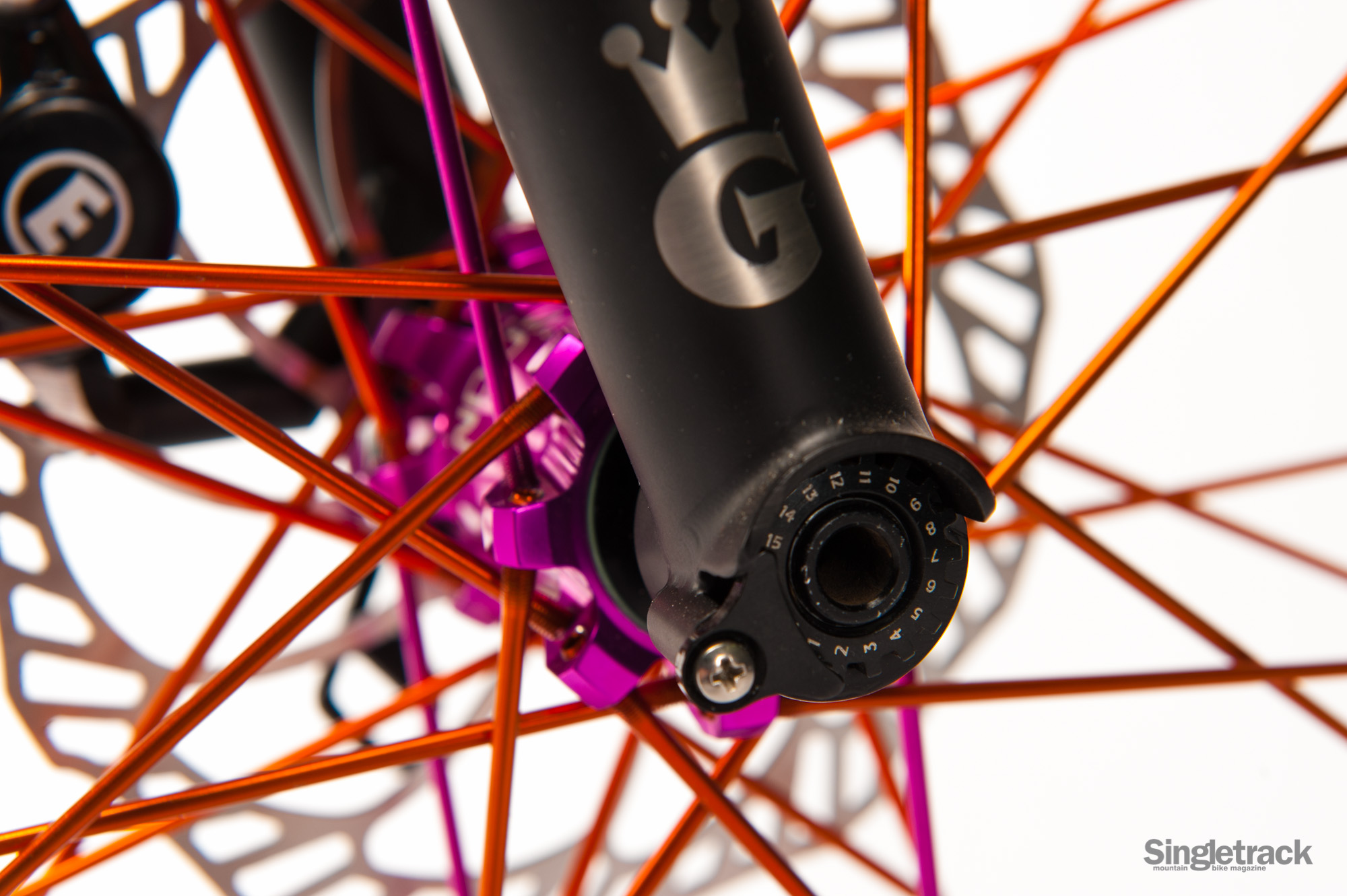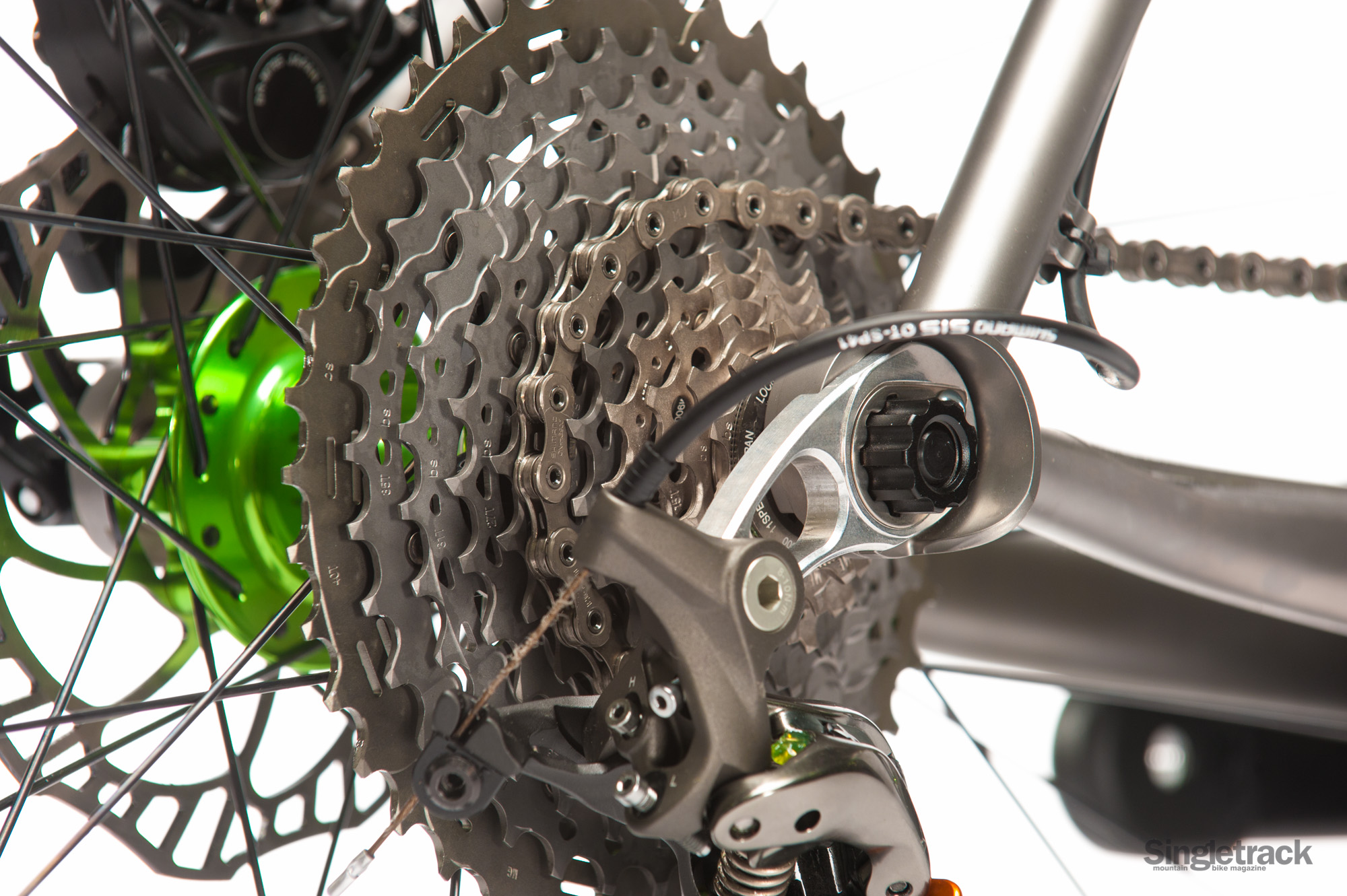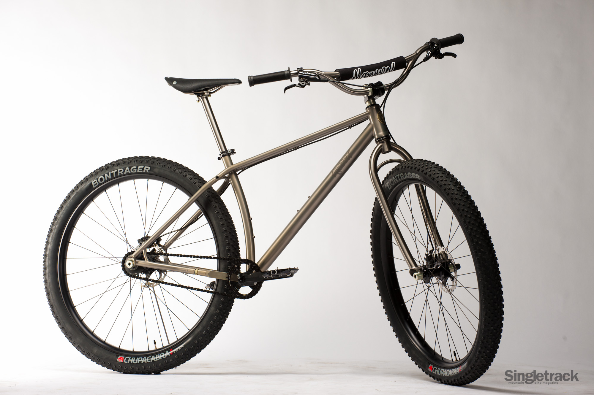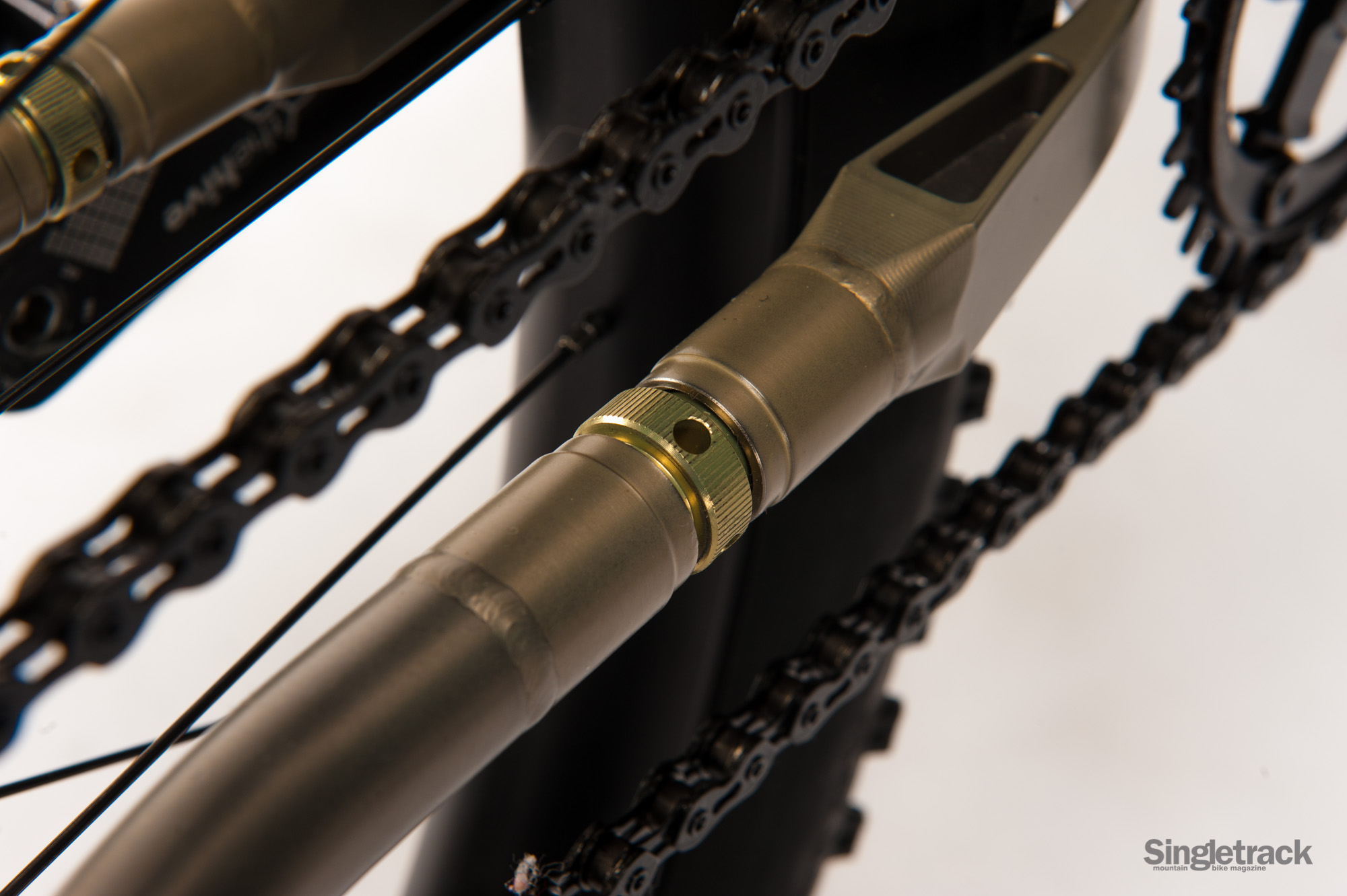 Quiring Cycles has adopted the 29+ wheel size wholeheartedly, and brought this titanium singletrack crusher to NAHBS 2015. The 29+ wheels excel in the undulating, uneven terrain that Quiring Cycles calls home, and between tyre volume and titanium construction provide traction and comfort akin to some short travel suspension designs. Note the custom chainstay yoke and weld quality on the detail images.