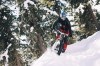 Our riding erred much closer to touring than anything else, but with friends coming to visit a few weeks later I insisted on hiring bikes again and going in search of more interesting terrain. Brett was able to point us in the direction of several mountain bike trails which while they start from the top of funicular their lower sections lend themselves well to fat biking and are only a short ride away. We headed for the Foppettas flow trails which are man-made; wide and smooth with several north shore sections. The images in the summer brochure have a clear trail centre look to them but when packed with snow it creates a white burm filled wonderland.