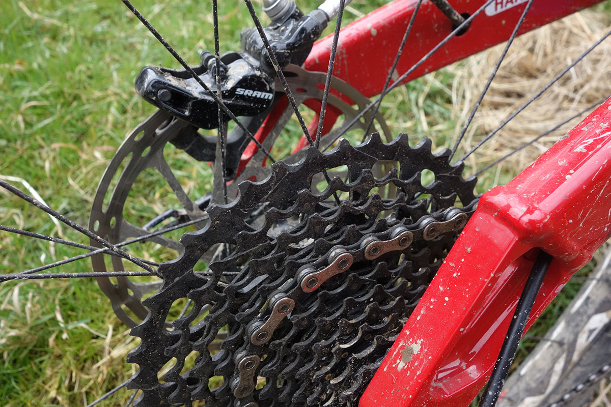 How it looks today. The X1 groupset has so far been pretty faultless. All the benefits of SRAM’s 1×11 gearing, but at a more sensible price (and the new GX gear looks to reduce that price again). My only issue has been with the enthusiastic 32T single chainring, which I find hard work on the unrelentingly steep climbs around here.