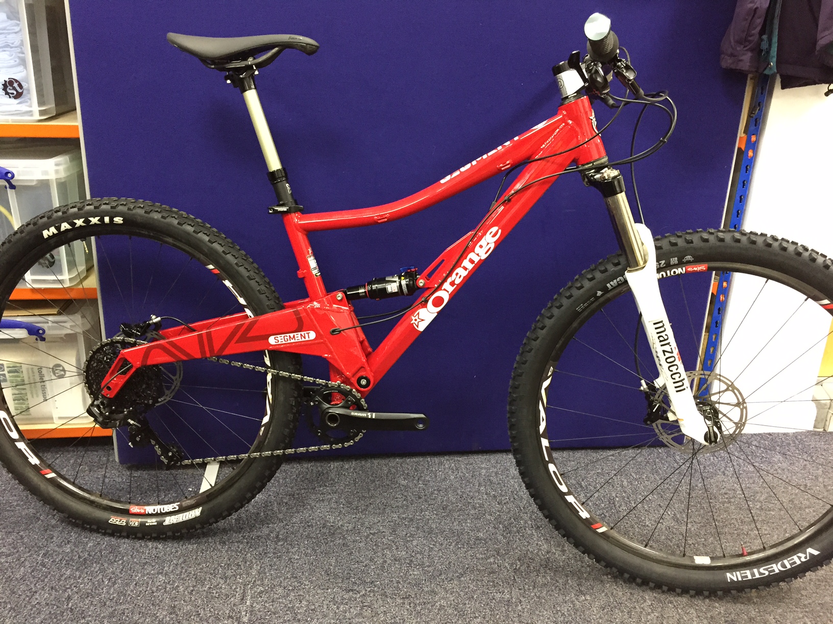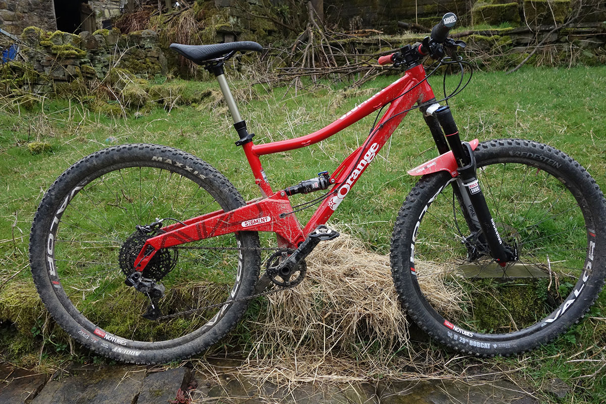 Having had an Orange Gyro for a year or so last year, I decided that it was time to move on and see what the fuss was about with this new Segment. Although it is also a 29er and has the same rear travel (110mm) and runs a 130mm fork, the Segment represents many of the changes in geometry (and fashion) that have taken place in the last couple of years since the Gyro was originally announced. The Segment has a pretty slack head angle (for a 29er) at 67.5° and the 23.6in/600mm longer top tube (than the Gyro) on the medium is intended for a short 35mm stem. So much, so contemporary. Orange started running fatter seat tubes a couple of years ago, allowing for dropper posts and the Segment has a port on the downtube for a Stealth routed post (although it’s a right faff to get the cable installed initially…