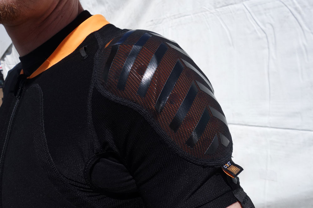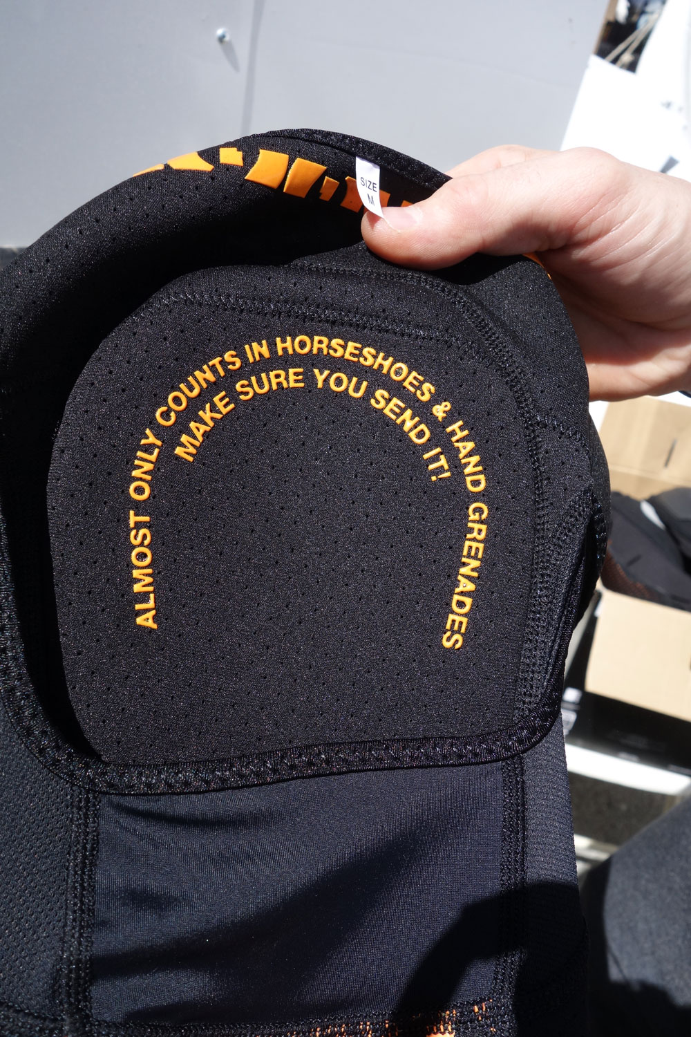 There’s also a very light padded sleeve for enduro riders. These were used on the first EWS round and we’ll see more of them in the future. The production one will be black rather than banana though.
