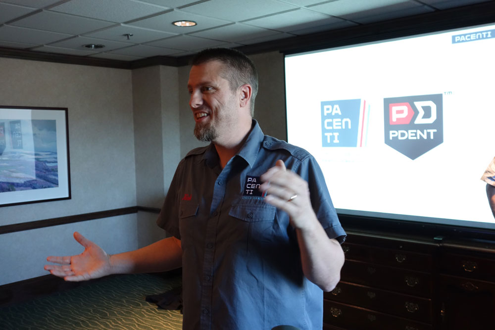 Before the Sea Otter yesterday, there was a select meeting of a dozen people in a hotel room away from the Sea Otter. There was a mix of journalists and big name OEM bar and stem (and fork) manufacturers for Kirk Pacenti’s big reveal.