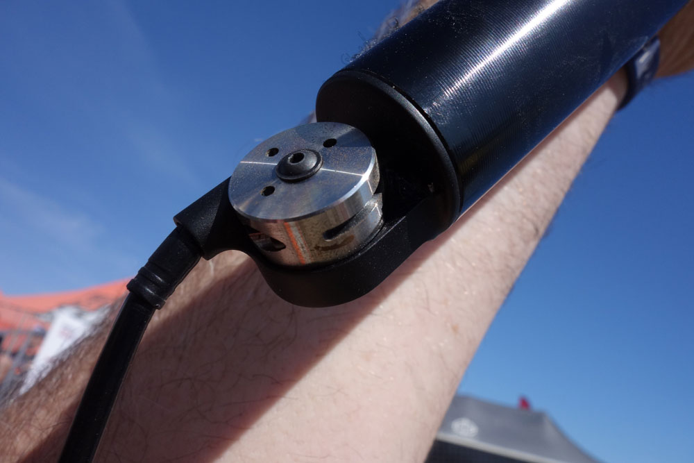 All that was to be expected, but in the ‘Come round the back and look at this’ box were a couple of surprises. The first being an inverted fork prototype. It’s nowhere near ready for production yet, but it has the potential to challenge the Rockshox RS1 for the hearts of the racing fraternity for a little less cash too. It will come in 80 and 100mm lengths, but also up to 150mm (with a 27.5 wheel) and 130mm (on a 29), which Rockshox is currently shy of doing.