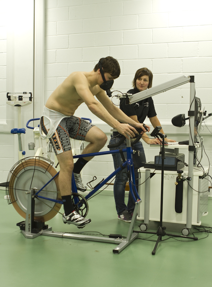 EWS head honcho Chris Ball himself obtained a 1st in Sports Science at the university. Napier have also provided fitness testing for elite mountain bikers – here’s a photo of a very fresh faced Ruaridh Cunningham going through a VO2 Max Test in the sports science labs.