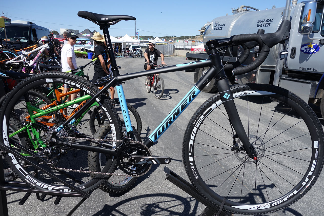 Look away now if you’re nervous of skinnier wheels. Here is the Turner Cyclosis. Mostly done so that the ‘cross keen riders at Turner (including DT himself) could have a bike to race on. It’s a race-geometry disc ‘cross bike with very neat internal cabling.