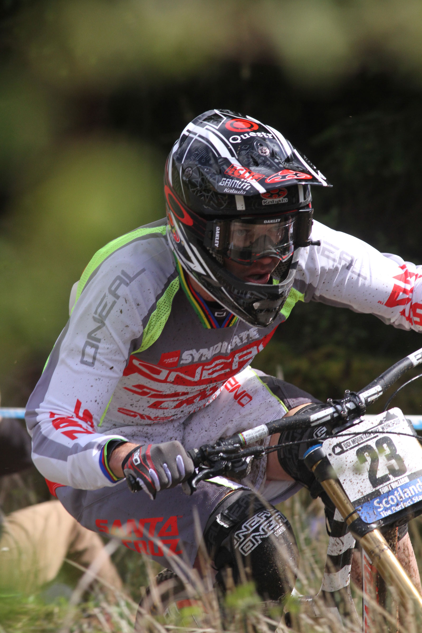 Greg Minnaar today equalled Steve Peat’s win of 17 World Cup wins – with five of those being at Fort William. Minnaar managed to put a second into Aaron Gwin who was looking unstoppable with a lead of four seconds over his nearest rival, but Minnaar put years of racing at Fort William to good use as he navigated the muddy and cut-up course that had changed dramatically over the week, thanks to days of heavy rain.