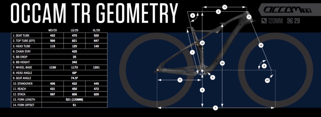 The Occam TR is – unsurprisingly, perhaps – the ‘trail’ implementation of the new bike. It’s a 29er, it’s got 120mm of travel front and rear and it’s light – the Large production frame (without the shock) weighs 1.99kg. The bike comes with Fox 32 fork, and it’s Boosted front and rear (so 148mm rear hub spacing and 110mm front hub spacing, in case you’d forgotten/you’ve been living in a hole).