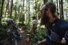 Deep in the woods the Sechelt communitiy comes out to cheer riders on! Rider Ted Russo.