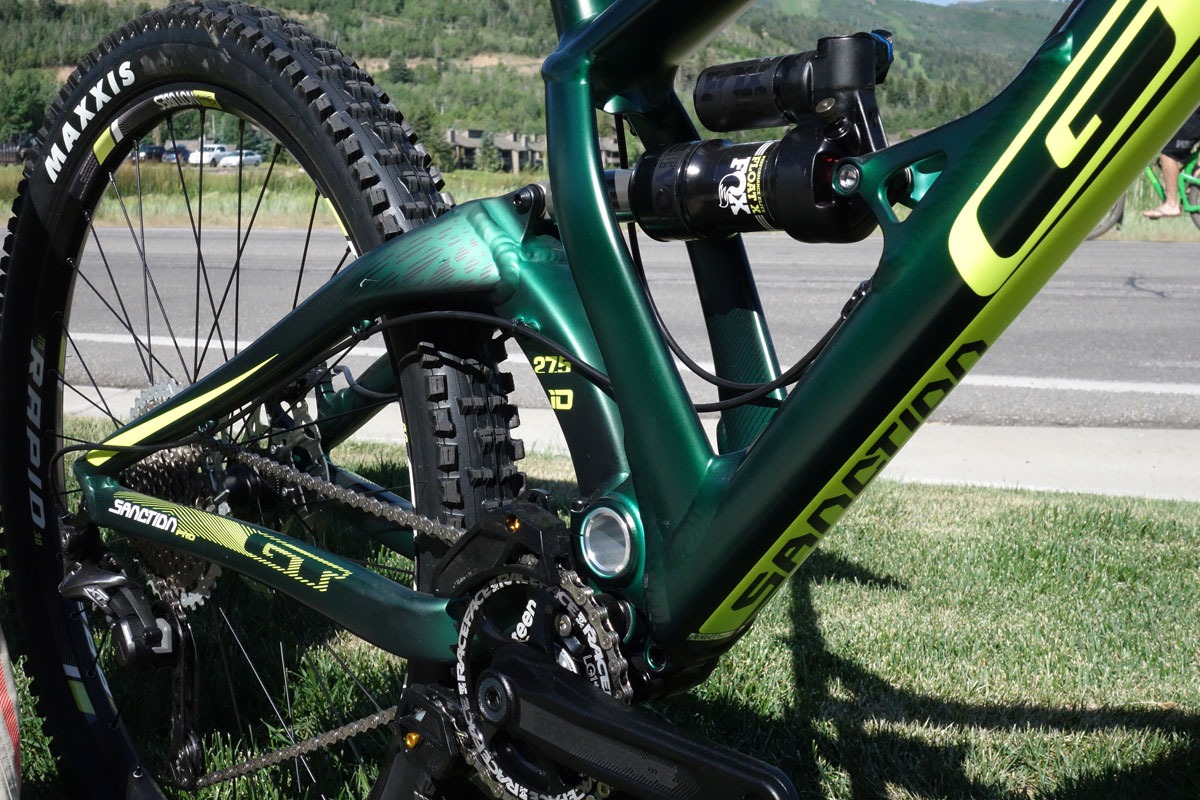 And here’s Hans again with GT’s Enduro machine, the Sanction. As raced by Dan Atherton, among others. There is a new Sanction Pro model coming out, which is intended to be a race-ready privateer enduro race bike.