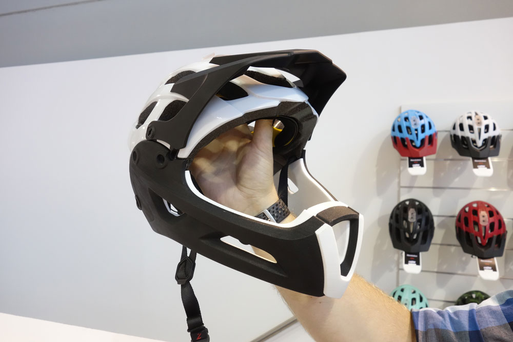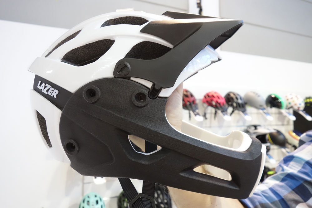 Lazer has just announced a long-time coming helmet called the Revolution. It’s a modular, trail helmet that takes inspiration from all the helmets going on out there right now and has done a good job of improving on them. It’s available as the Revolution (around £100) and the Revolution FF with the bolt-on chin guard. Unlike the Bell Super 2R, the chin guard isn’t very quick-release and there are three Allen bolts each side to hold it in place.