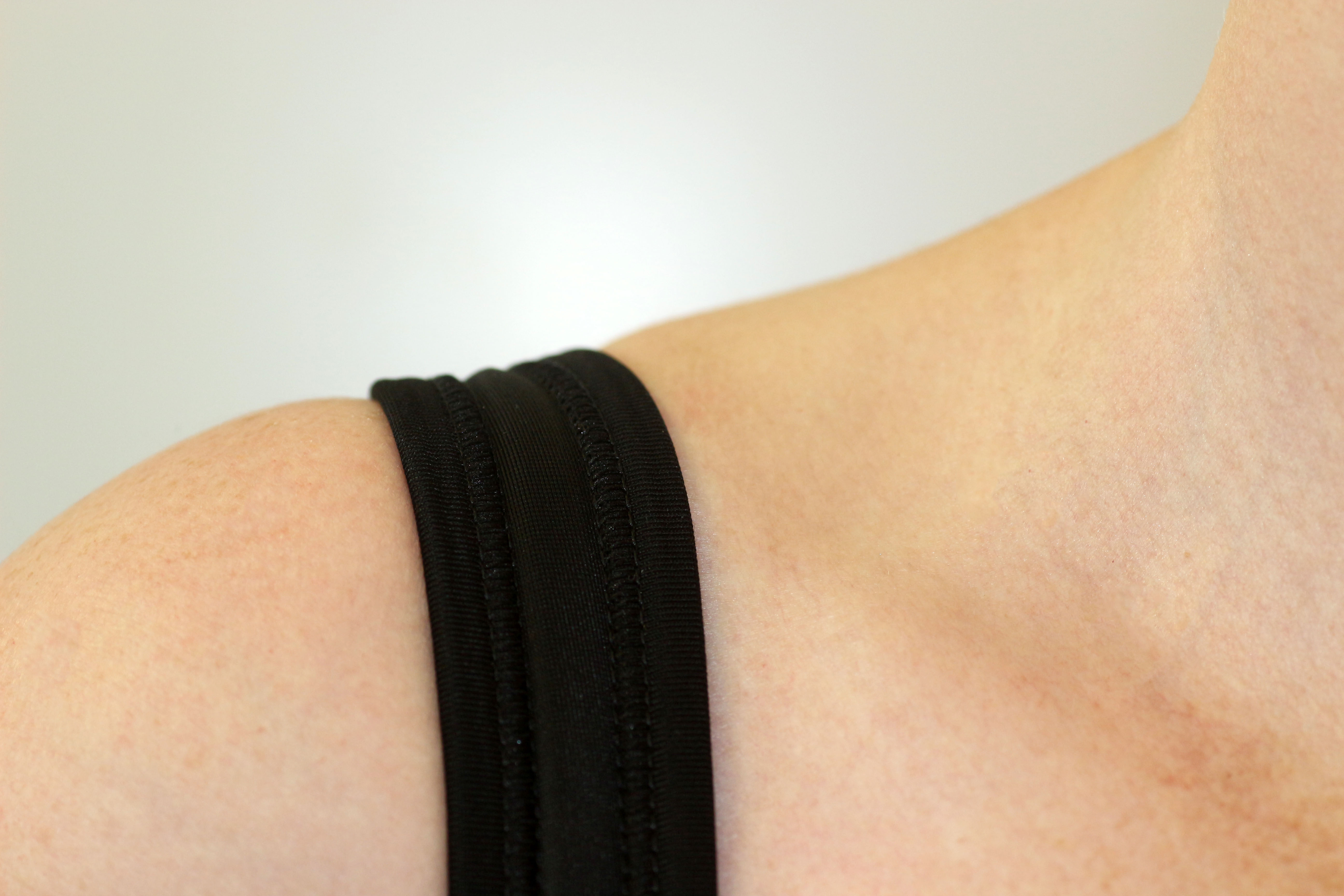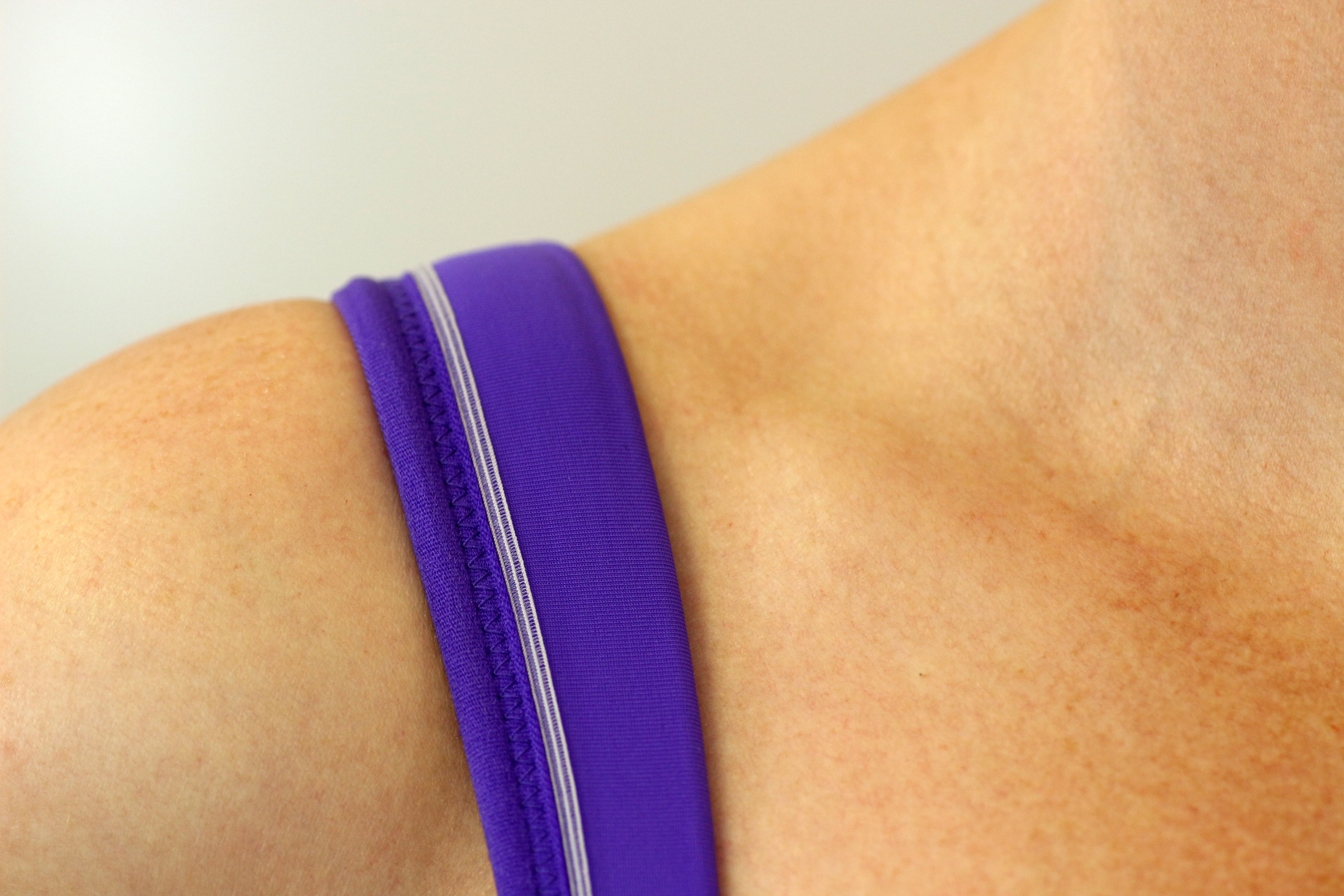 Even armed with the right size, I still found this the most difficult bra to get on due to the double straps at the back, and it definitely compresses! The fabric isn’t too thick and the load is well spread, with even pressure all around the chest strap and over the shoulder straps. There isn’t one point where it feels too intense or uncomfortable for me and overall I found the support from this bra is excellent. It can withstand the most jumpy of exercise classes, and I was able to wear it for quite a long spell with no issues.