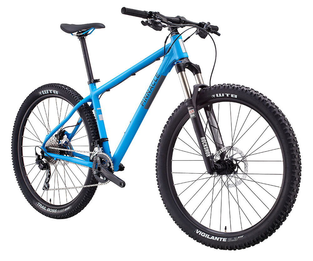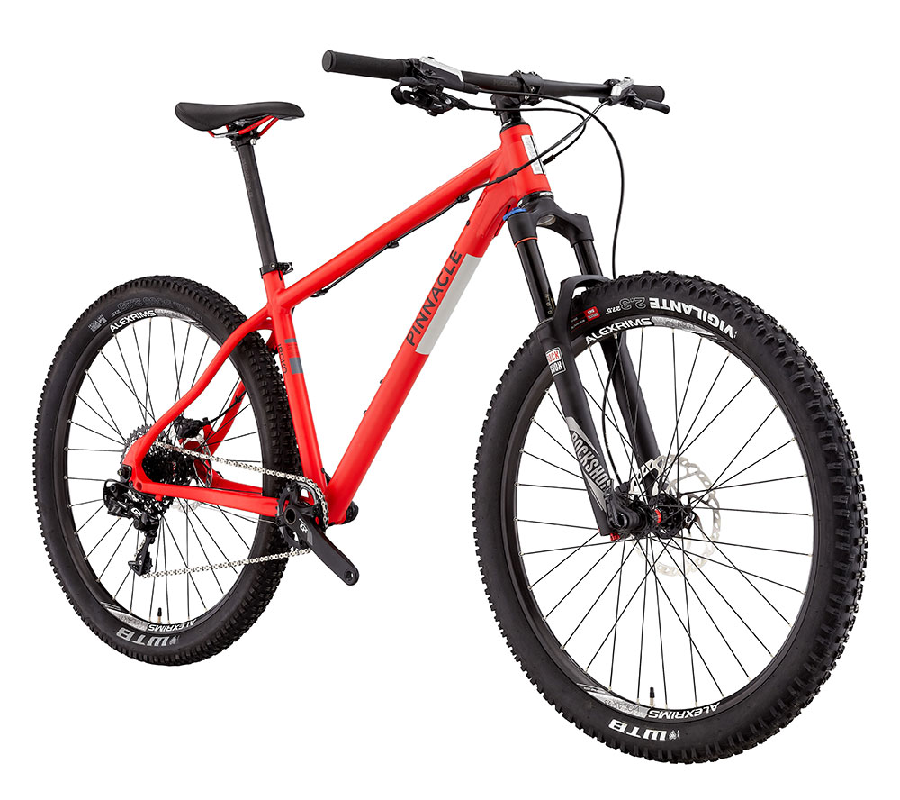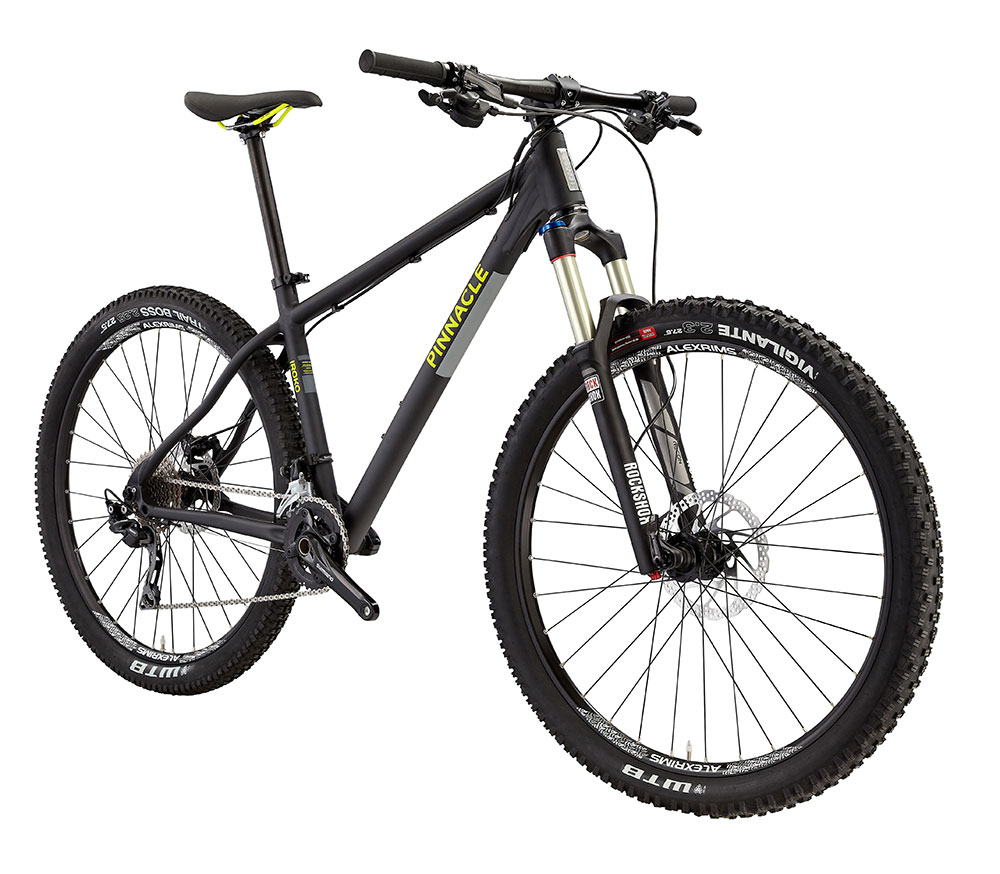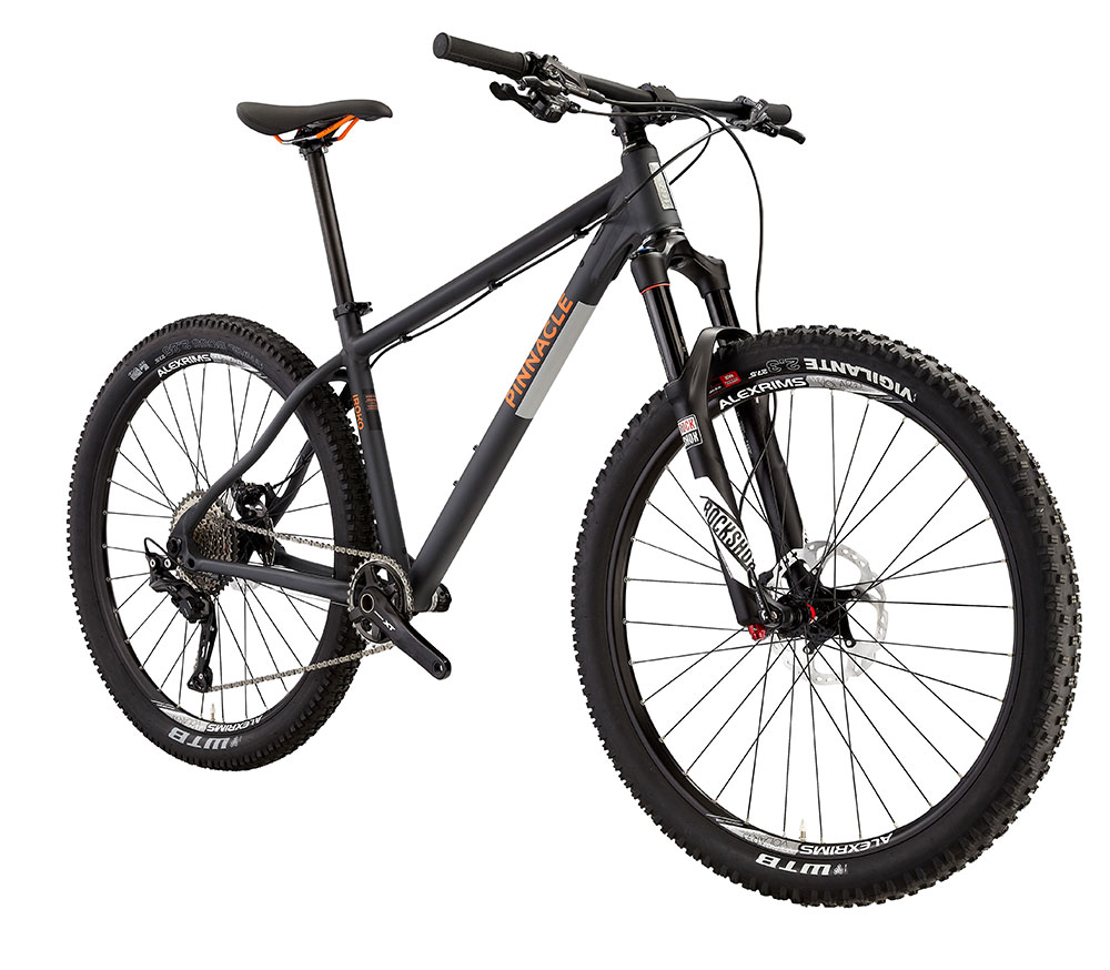 The bikes do feature those new-fangled 27.5in wheels, but with quite understated 2.3in tyres on them. With prices starting at £800 and heading up to £1450, the Iroko is Pinnacle’s brand new 27.5in/650B trail hardtail platform. It has evolved from the original 26in model, featured in the range back in 2013 and Pinnacle reckons it has maintained the same ‘fun factor’ as the previous model.