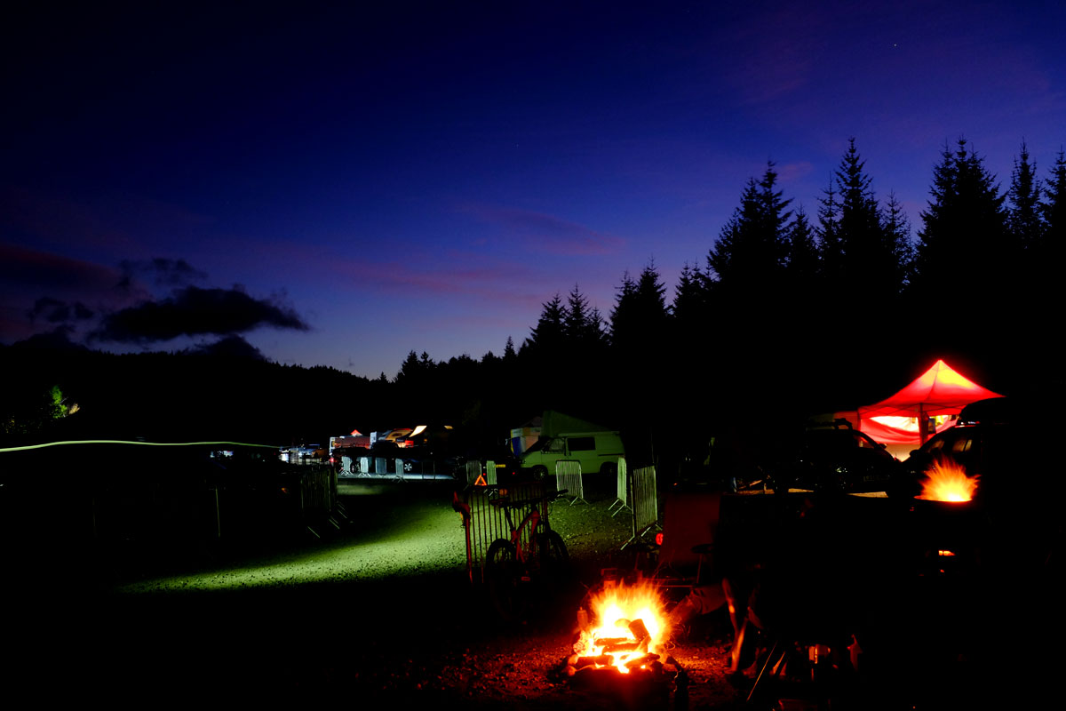 The 2015 course was on the whole quite similar to the course used for the WEMBO world champs in 2014 minus a few climbs and a few short sharp climbs introduced just for good measure. There was still 350m of climbing per 10km lap, so it wasn’t for slackers. All in all the course seemed to be well received and stood up well for the duration of the race. The layout of the track meant that nearly every solo and team had trackside parking which worked exceptionally well, and the glow of nearly everyone’s fire pits kept the atmosphere cheery until the perfect blue sky sunrise on Sunday morning.