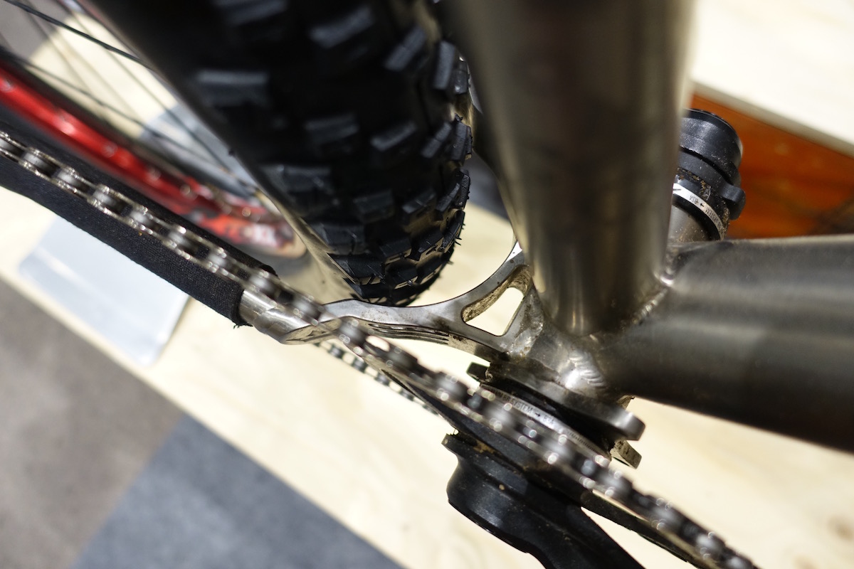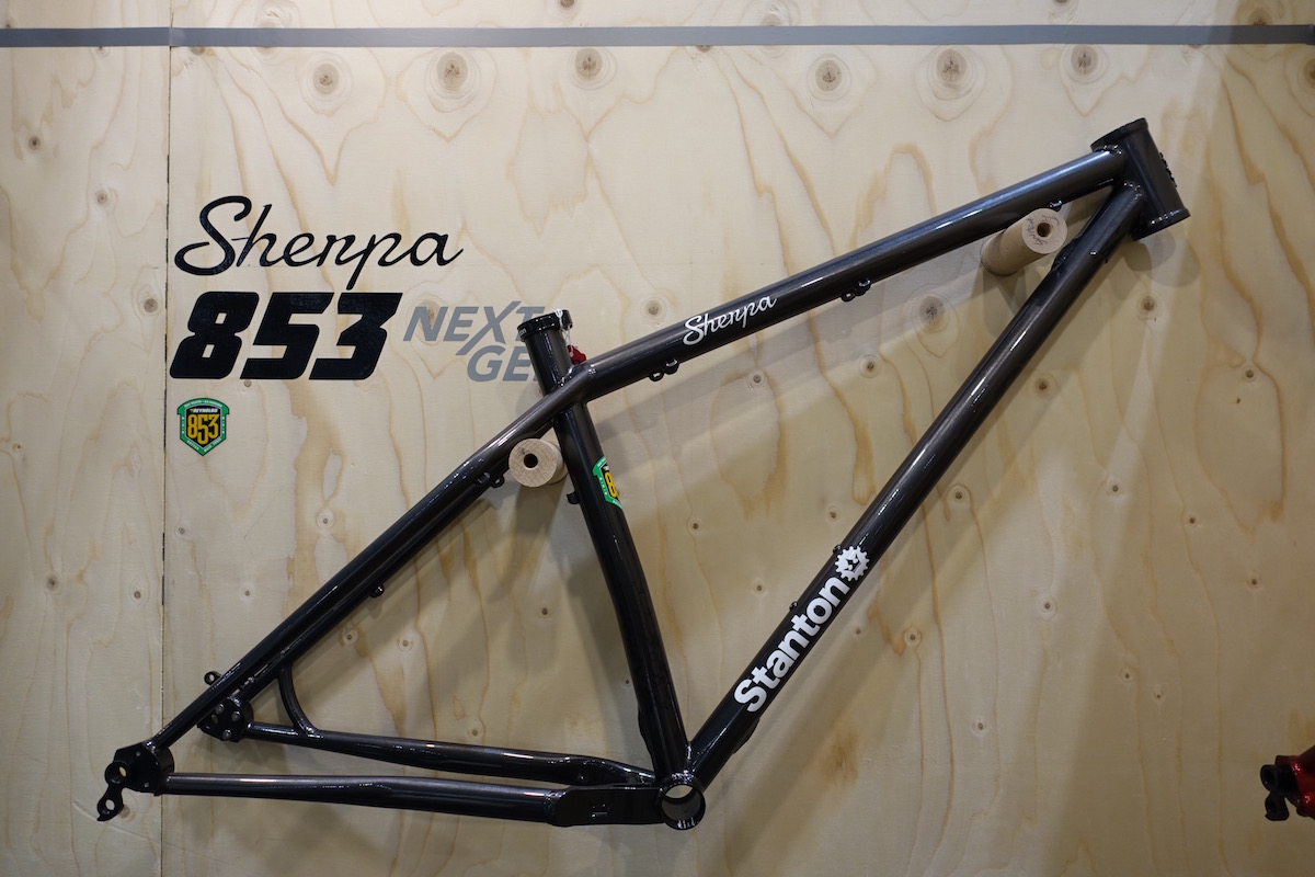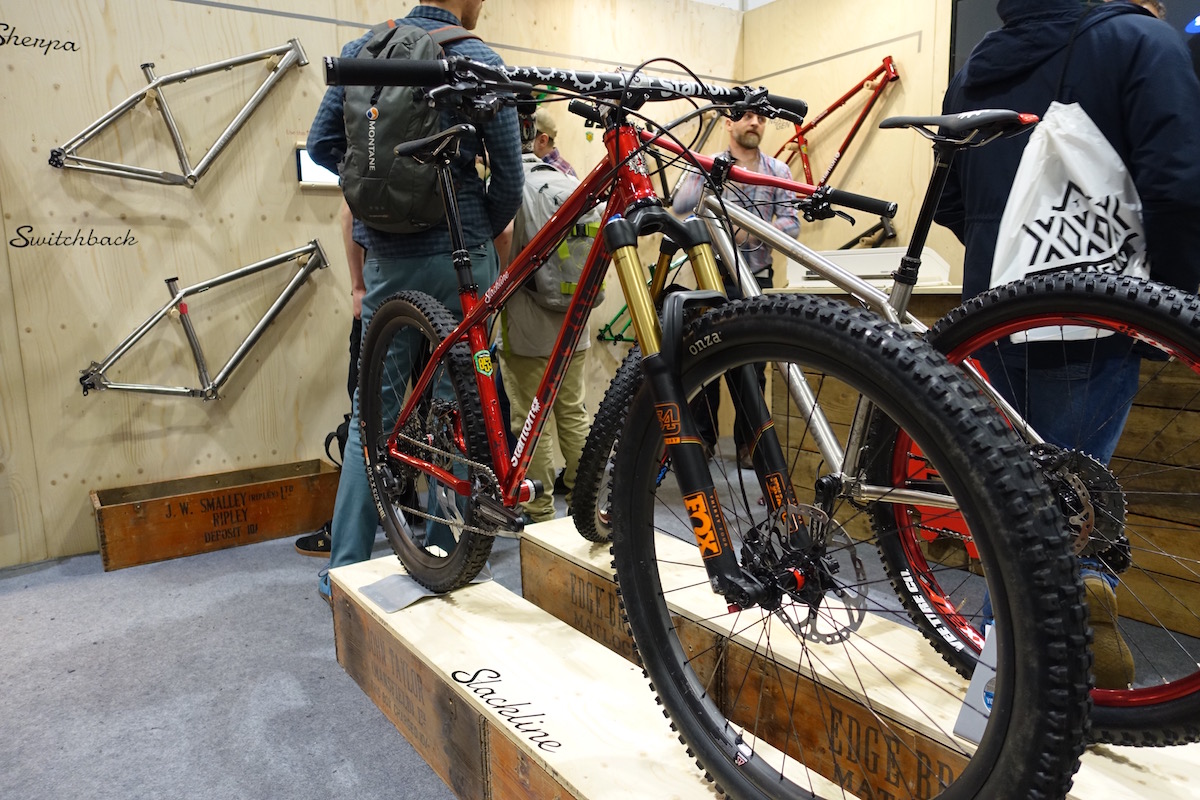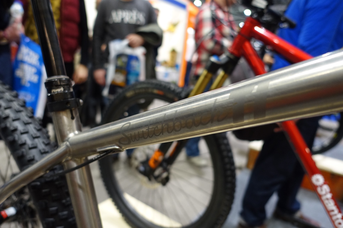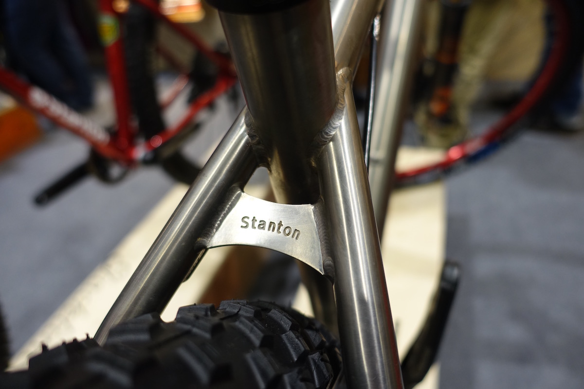 For the most part, Stanton Bikes work with steel. There’s the Slackline and Switchback models built around 27.5in wheels, and there’s the Sherpa that’ll fit 29in or 27.5 plus wheels. In addition to those models and multiple colour options, both the Sherpa and Switchback are produced in Titanium as well, which Dan is very proud about. As we took a tour through the Stanton booth at the show (see the video below), it became abundantly clear that these aren’t your typical catalogue frames from Taiwan with a simple sticker slapped on – there’s a whole load of detail lurking beneath the painted exterior.
