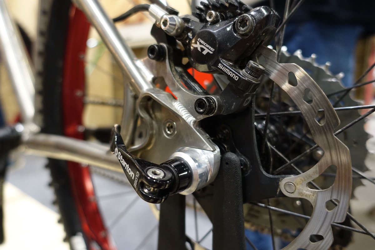 The Switchback Ti has some stunning details on the frame, including the bridging plate at the upper section of the seat stays, complete with Stanton branding.