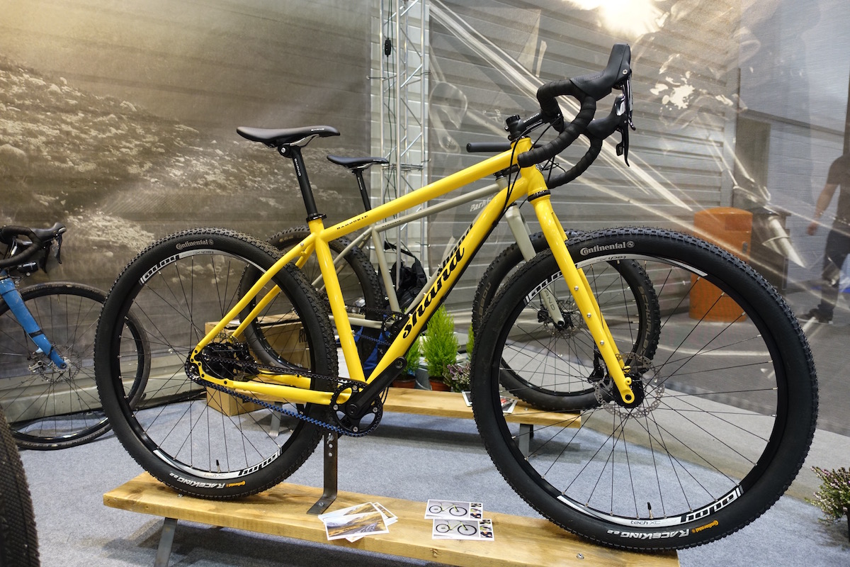 The Bahookie and the Drove are two very similar models in the Shand line. They’re both designed for 29in mountain bike wheels and tyres, but the Drove comes with a drop bar, and the Bahookie comes with a flat/riser bar. We’ve got a Drove on test at the moment, and you’ll be able to read the full review in Issue #112 of Singletrack Magazine.