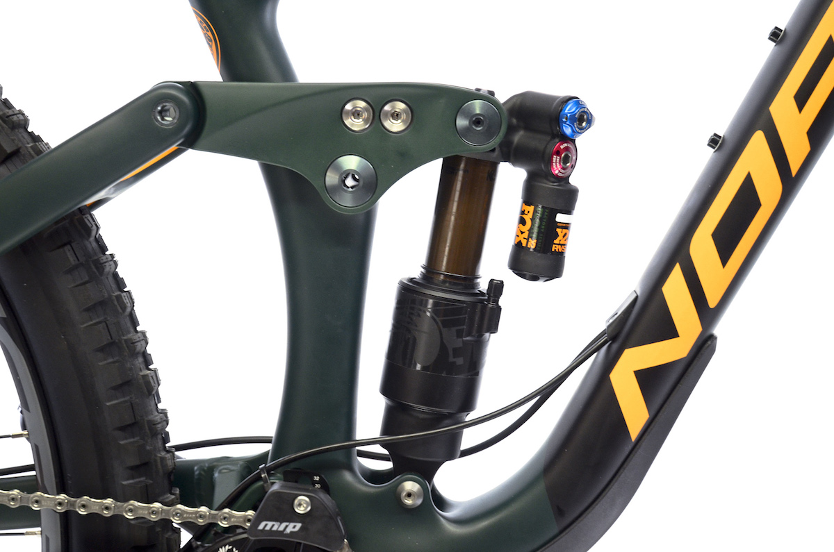 So for a start, Norco is only releasing the new Range in carbon fibre. Our guess is that alloy models will follow soon, but in the meantime carbon fibre is your only flavour for the Range. Norco uses the fantastic-plastic for both the main triangle and the seat stays, while the chain stays and rocker link remain of the metallic variety.