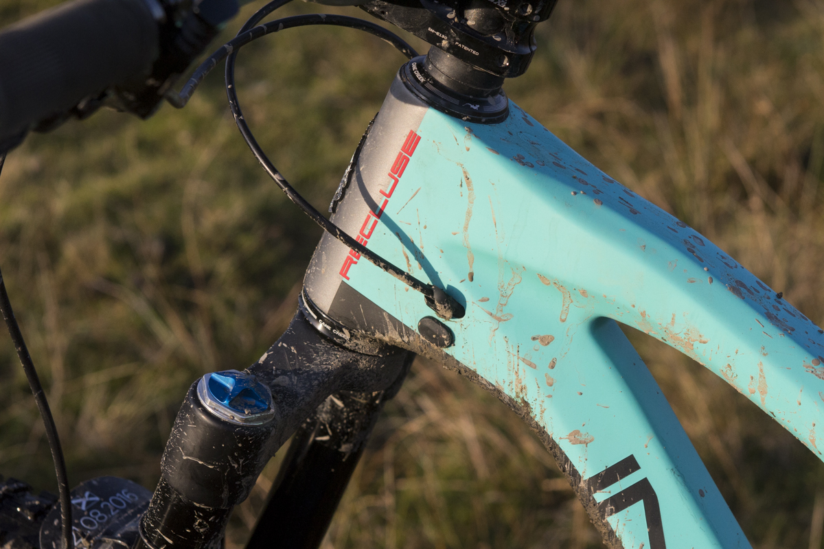 There’s internal cable routing throughout, with only the rear brake line running externally along the chainstay. Although our Recluse Elite came setup as a 1×11, an upper direct mount on the seat tube allows you to bolt on a front mech should you want to roll with a 2x drivetrain.