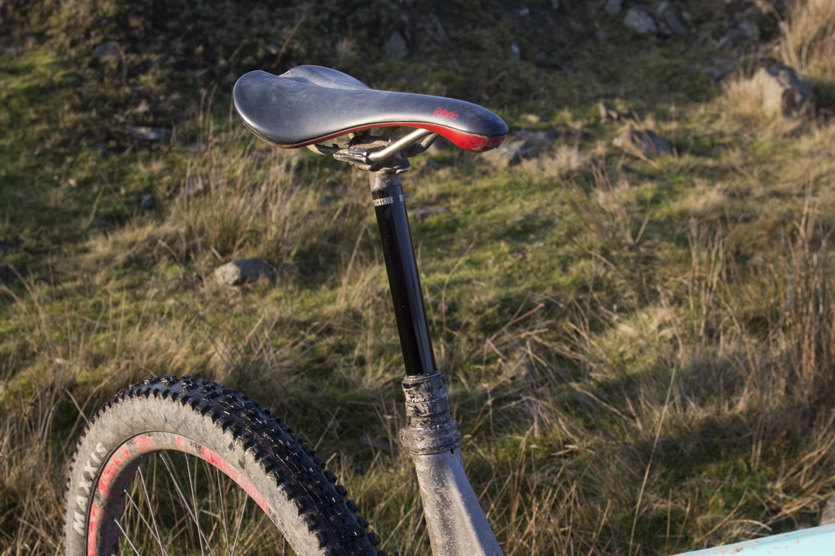 Our test bike has a 150mm travel dropper post fitted, and I found that even with the seatpost collar slammed down into the frame, the saddle height was still too tall for my legs when the Reverb was fully extended. Of course you can toggle the Reverb height as needed, but it’s an absolute pain in the arse – everytime I’d pop the saddle up after a descent, I had to then fiddle with the remote to get the seat back down 10mm or so.