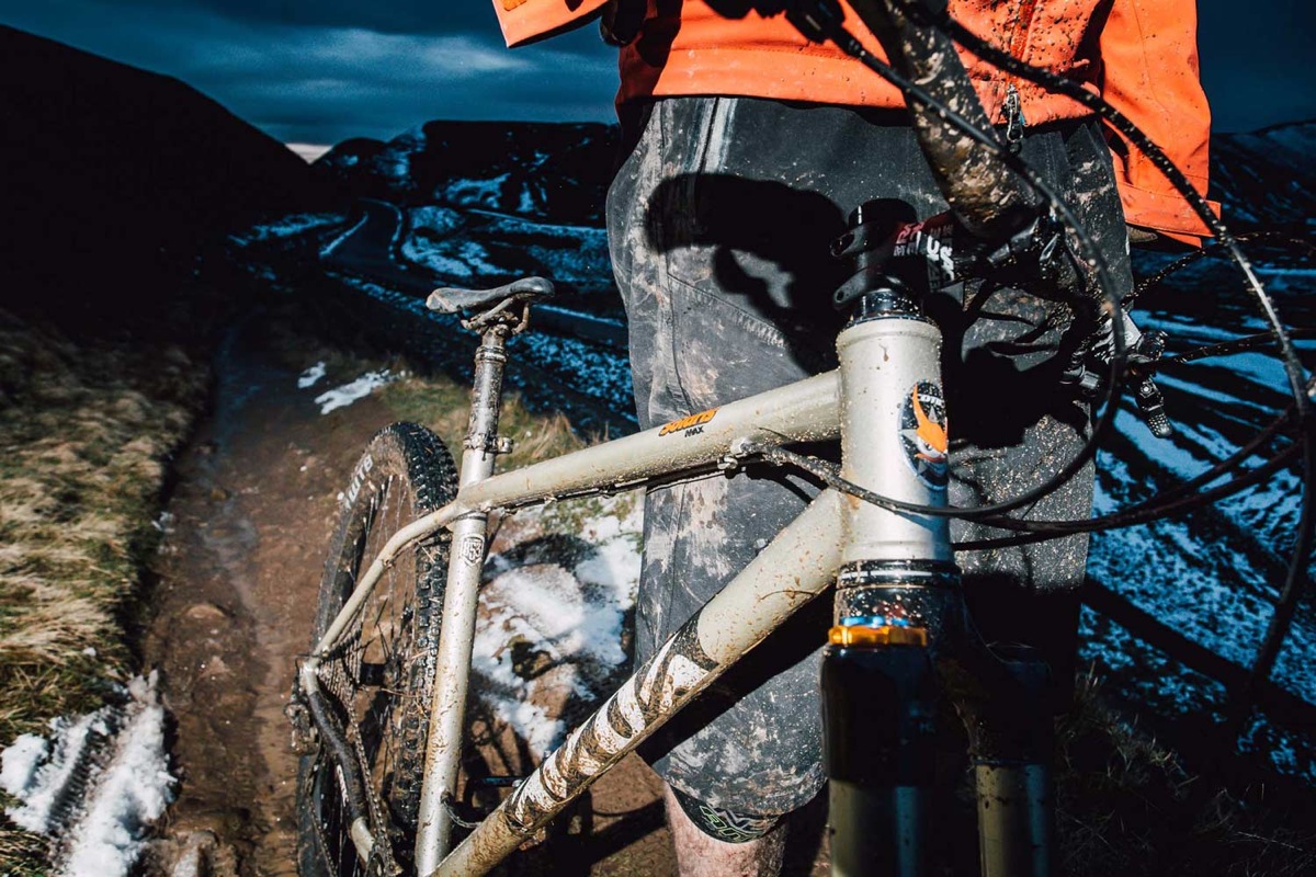 I wanted to make the bike work without trouble with all the latest tyres, so I went for full 3.0″ compatibility giving you plenty of options for your own bike. Personally, I’m still a fan of the 2.8″ on the back to keep the weight down a little, especially now I can get hold of the Tough casing from WTB on the Ranger which is now an option on the complete bikes. This adds weight back in, but helps that balance of pressure vs tyre roll compromise better. We have the Tough casing option in stock now, so if you’re buying a bike or a wheelset, you just pop a note on the order saying that’s the version you’d like.