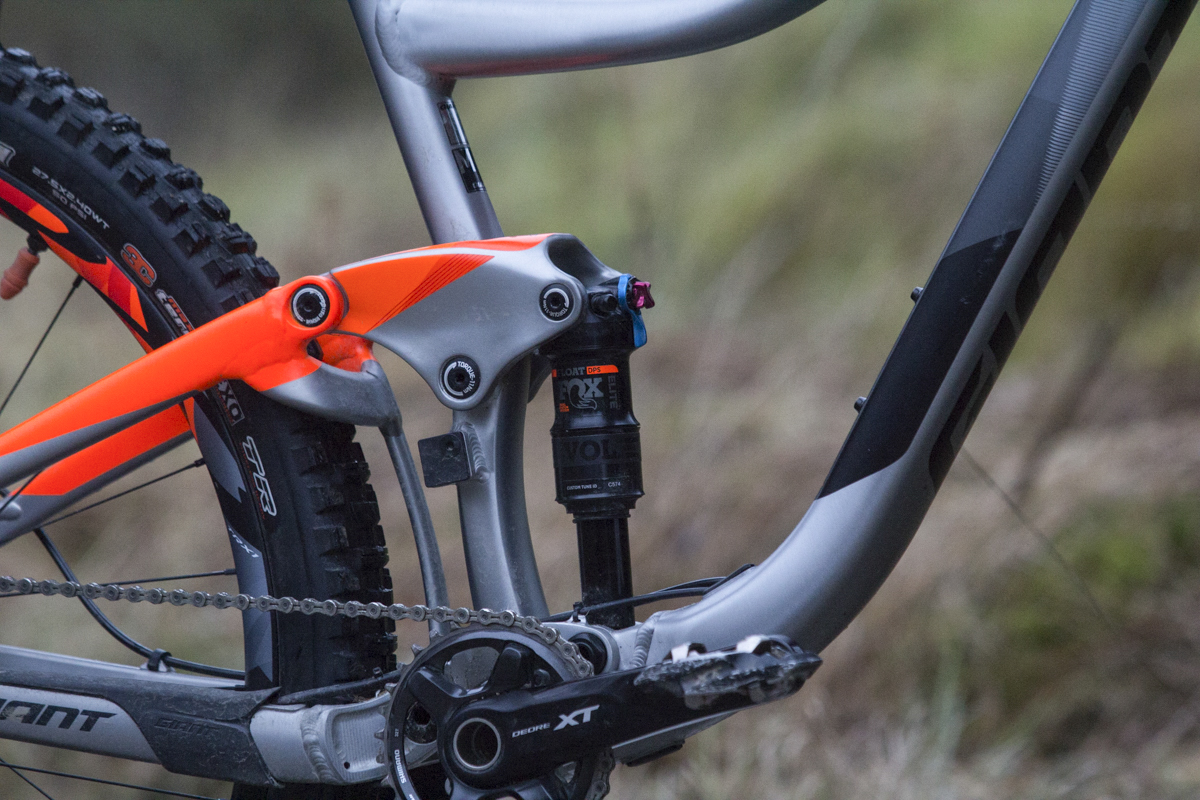The heart of the new Giant Trance is the reworked Maestro suspension design. Overall, the arrangement remains very similar to the original Maestro architecture, with two struts joining the one-piece swingarm to the front end. Those struts consist of a small link around the bottom bracket and a rocker link that drives the rear shock. Travel sits at 140mm on the rear.