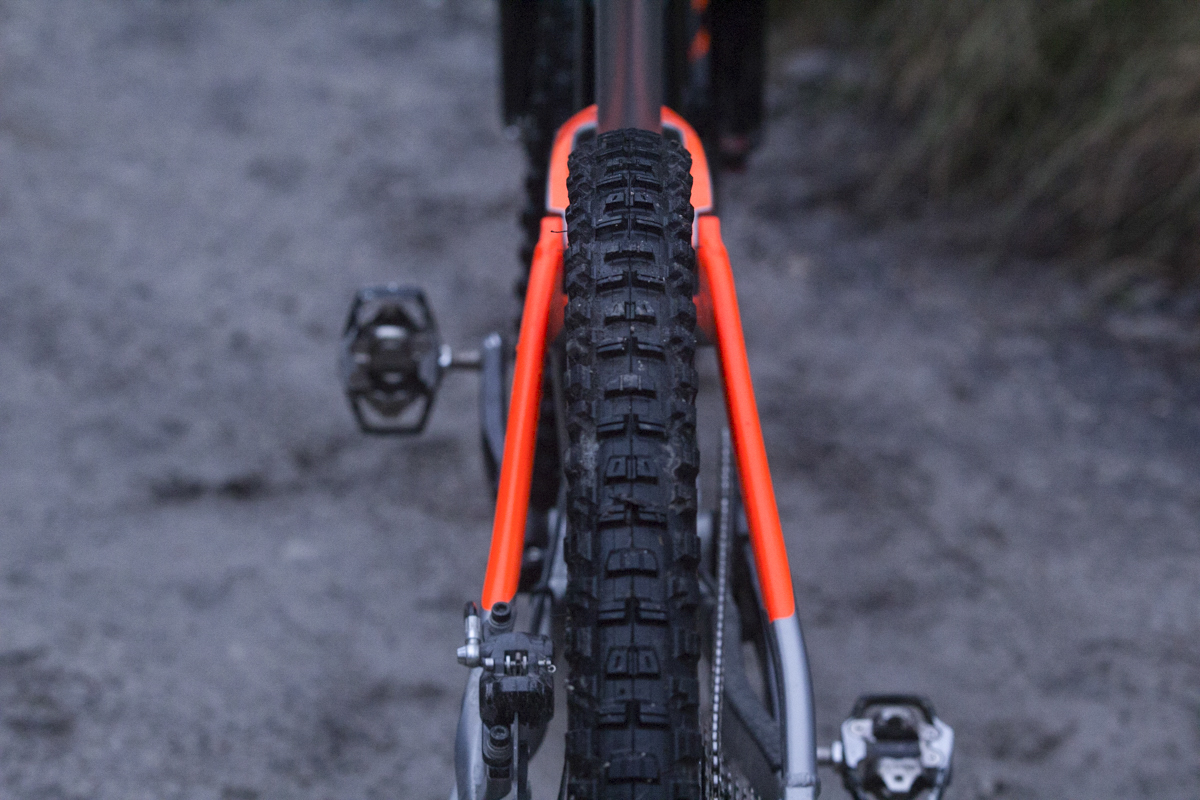 Since first building up the Trance 1, I’ve made a couple of changes to the spec for riding our local trails. The Schwalbe tyres have been pulled off to make way for more aggressive (and wider) Maxxis Minion tyres. There’s a 2.4in DHR II on the rear, which uses the 3C MaxxTerra rubber compound and EXO reinforced sidewalls.