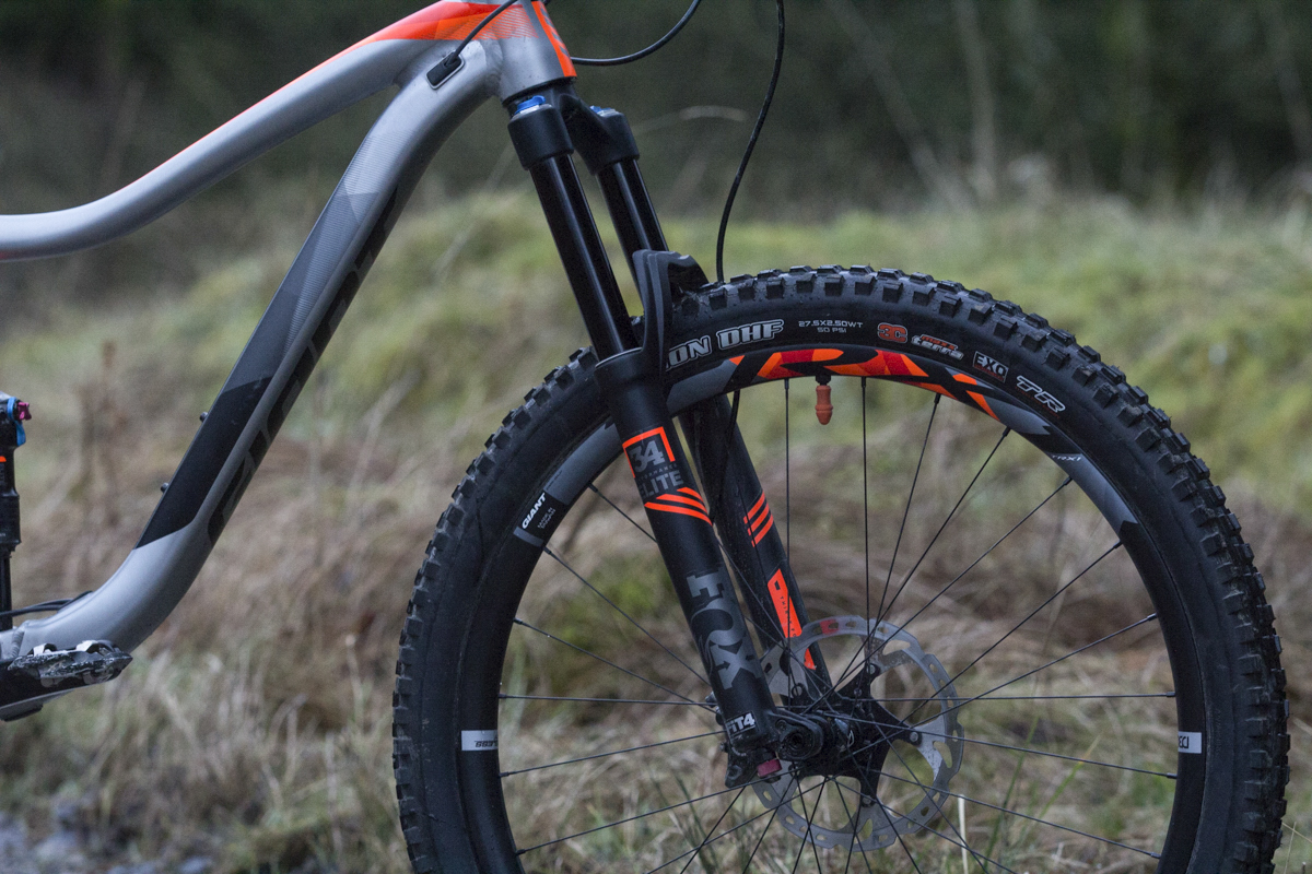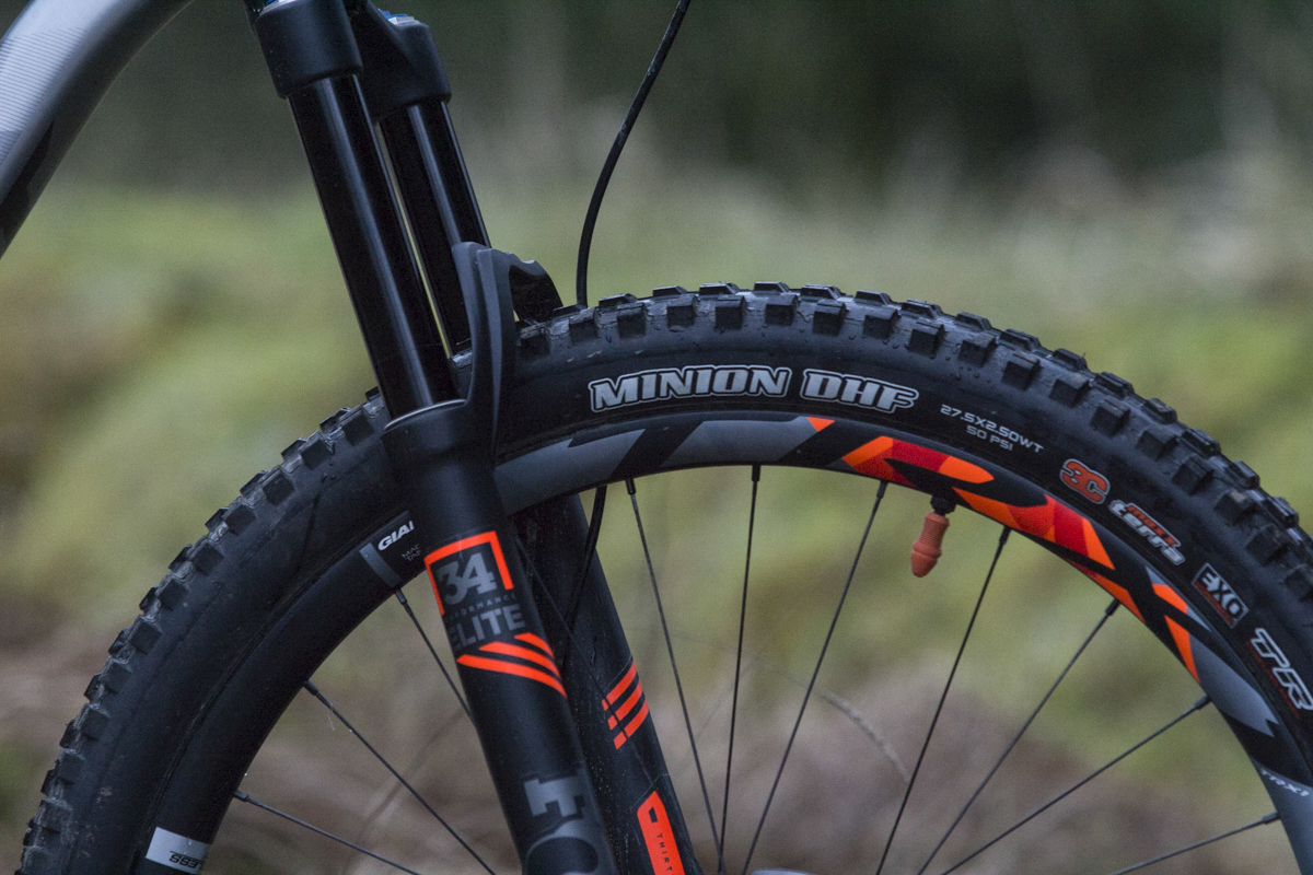 To match the rear Minion DHR II, there’s a Minion DHF on the front that measures 2.5in wide. Both Minions are the new Wide Trail (WT) size, which is ideally suited to the newer crop of rims that are running broader internal rim widths.