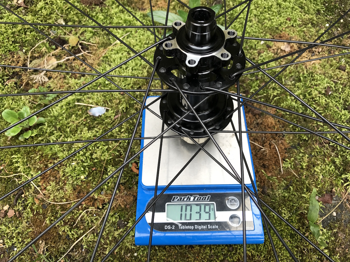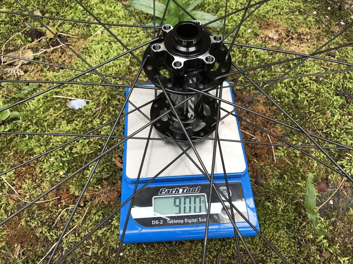 Wheel weight for the front 738 wheel comes in at 900 grams on our Scales Of Doom.