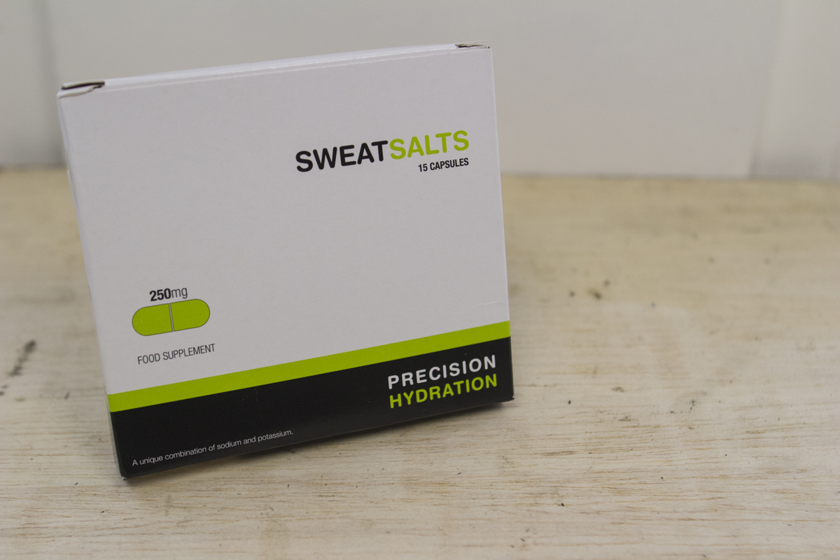Salts for when you’re sweating, not salts distilled from sweat. You take one or two of these an hour with a swig of water, during vigorous sweaty exercise, to keep your electrolyte levels up and stop you getting cramp and such like.