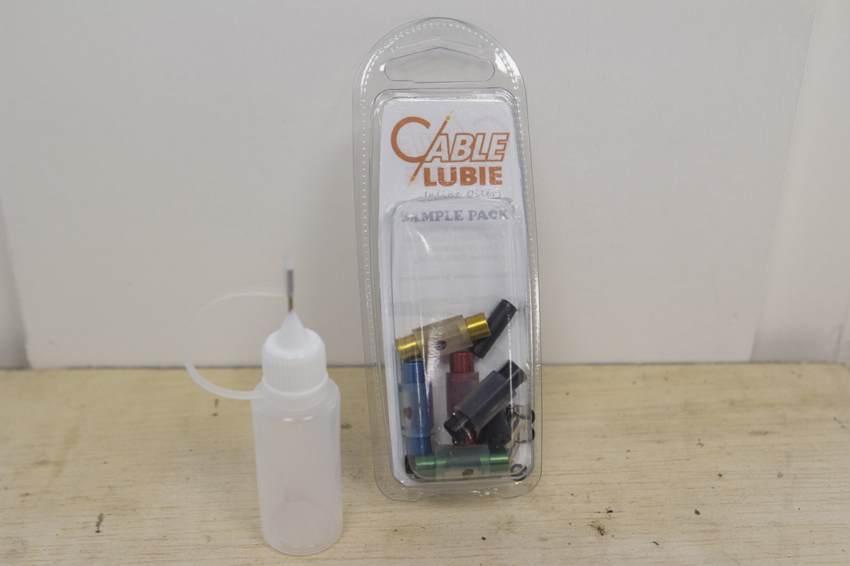 Cable Lubie has the potential to be one of those pieces of kit you didn’t realise you needed until you get it. We ran a story on them back in November and now we have some to test. The simple “Inline Cable Oiler” instals to your current gear outers and gives you a quick and easy method of lubing and re-lubing your cables. A small “Oil Chamber Window” gives you a convenient, visual, and as it’s made from a self healing material, you can poke a hole in it to pump in more fluid.