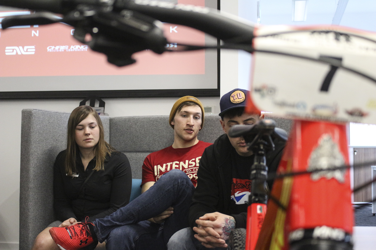 After chatting with some of the riders during the team launch, we decided to get a closer look at the two bikes they’ll be racing on this year; the Intense M16, and the Tracer.
