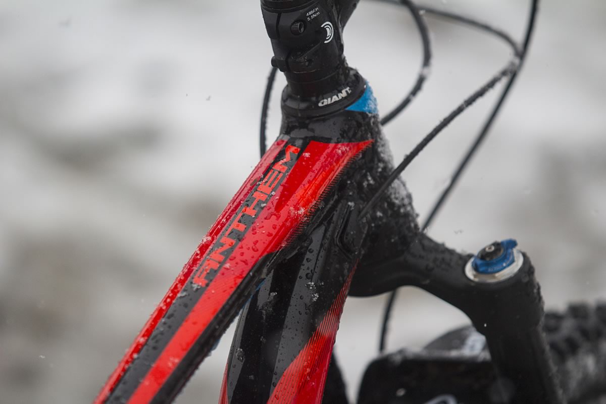 In all, there really is very little to complain about in the component department. I did experiment with some wider and more aggressive rubber to make the most of the Anthem’s capabilities, and found sufficient clearance in the rear triangle for a 2.4in WTB Trail Boss. The Giant dropper post is smooth enough, but I did find it short on travel, and the cable started gumming up on us after being subjected to many muddy rides.