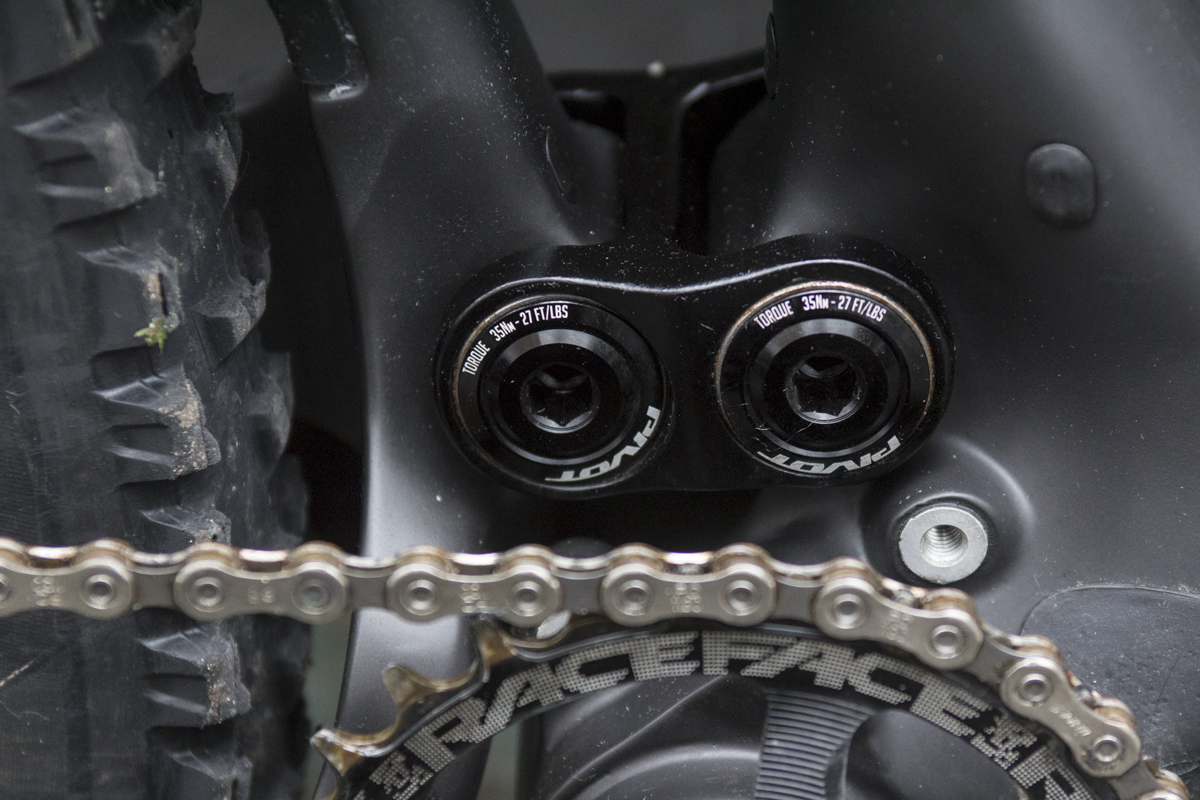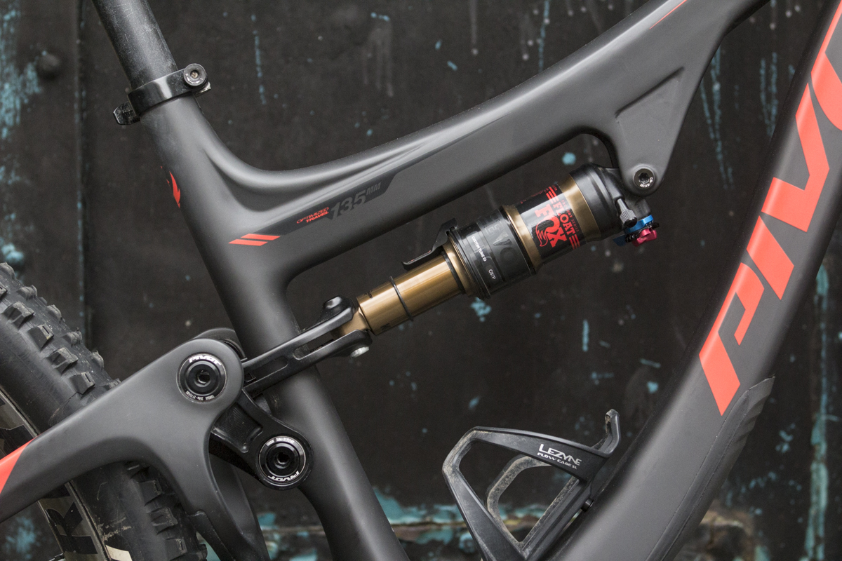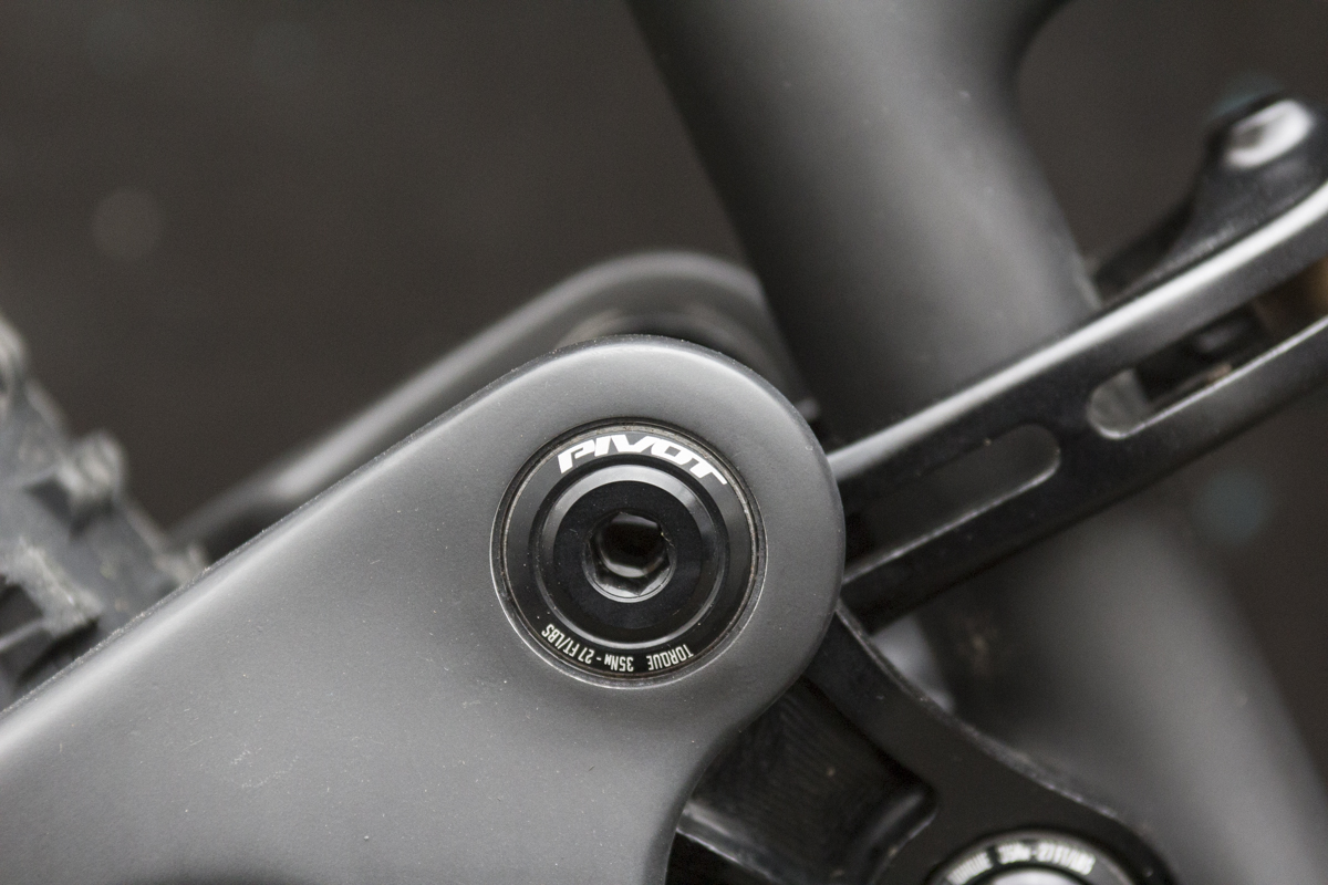 And why do that? Firstly by eliminating the DU bush, Pivot uses two cartridge bearings at the base of the shock yoke to handle rotation during actuation of the bike’s travel. This reduces stiction and allows for a smoother feel to the suspension. Secondly, it helps the upper link to drive the rear shock in a more linear fashion, with less change to the pivot angle as it drives the shock through it’s stroke. Dave Weagle has lots more numbers and equations to fill our tiny heads with about the DW5 design, but to save you from having your brain melted, we’ll leave it at that.