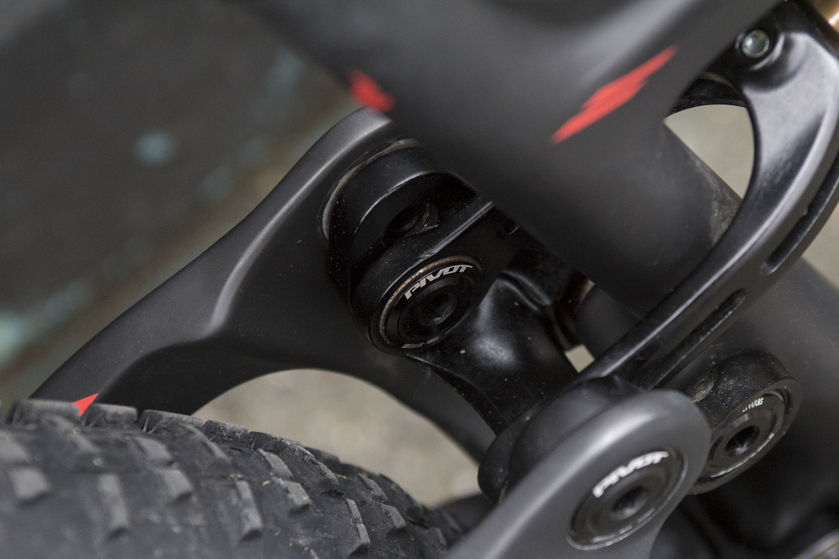 Just above the 92mm wide press-fit bottom bracket is a very compact lower linkage that keeps things tight and stiff.