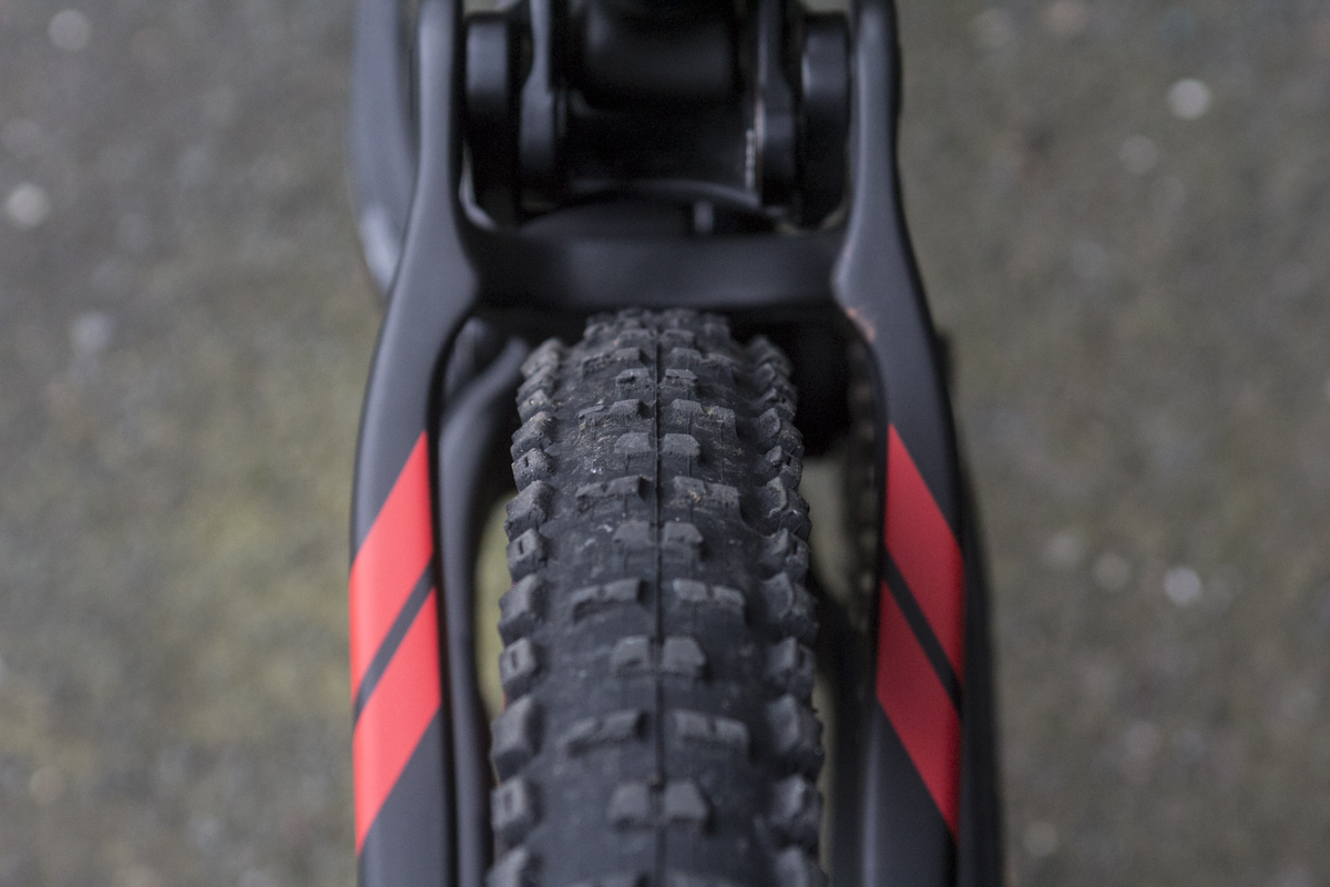 Inside the rear swingarm you’ll find MASSES of tyre clearance. Or if you ride in the UK, plenty of room for mud. Our test bike features 2.3in wide tyres, though Pivot says there’s room for 2.4in rubber. Note that there is plenty of width for wider rubber again, but it’s clearance down by the chainstay yoke where a taller tyre may run into some clearance issues. After all, this bike does come with incredibly short 428mm chainstays.