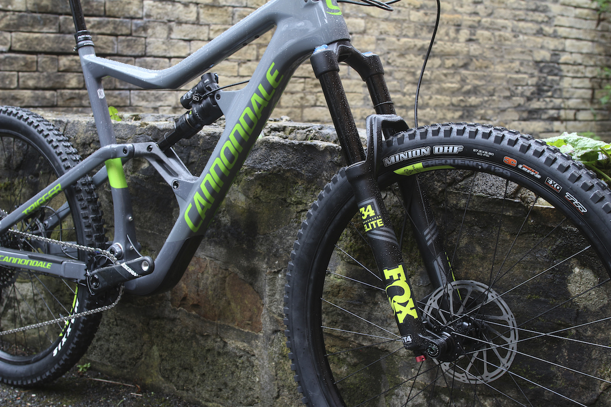 More spec influence from Cannondale’s UK team is evident in the wheel and tyre choice on the Trigger series. Proper tubeless rubber abound, with a 2.3in wide Maxxis Minion DHF up front…