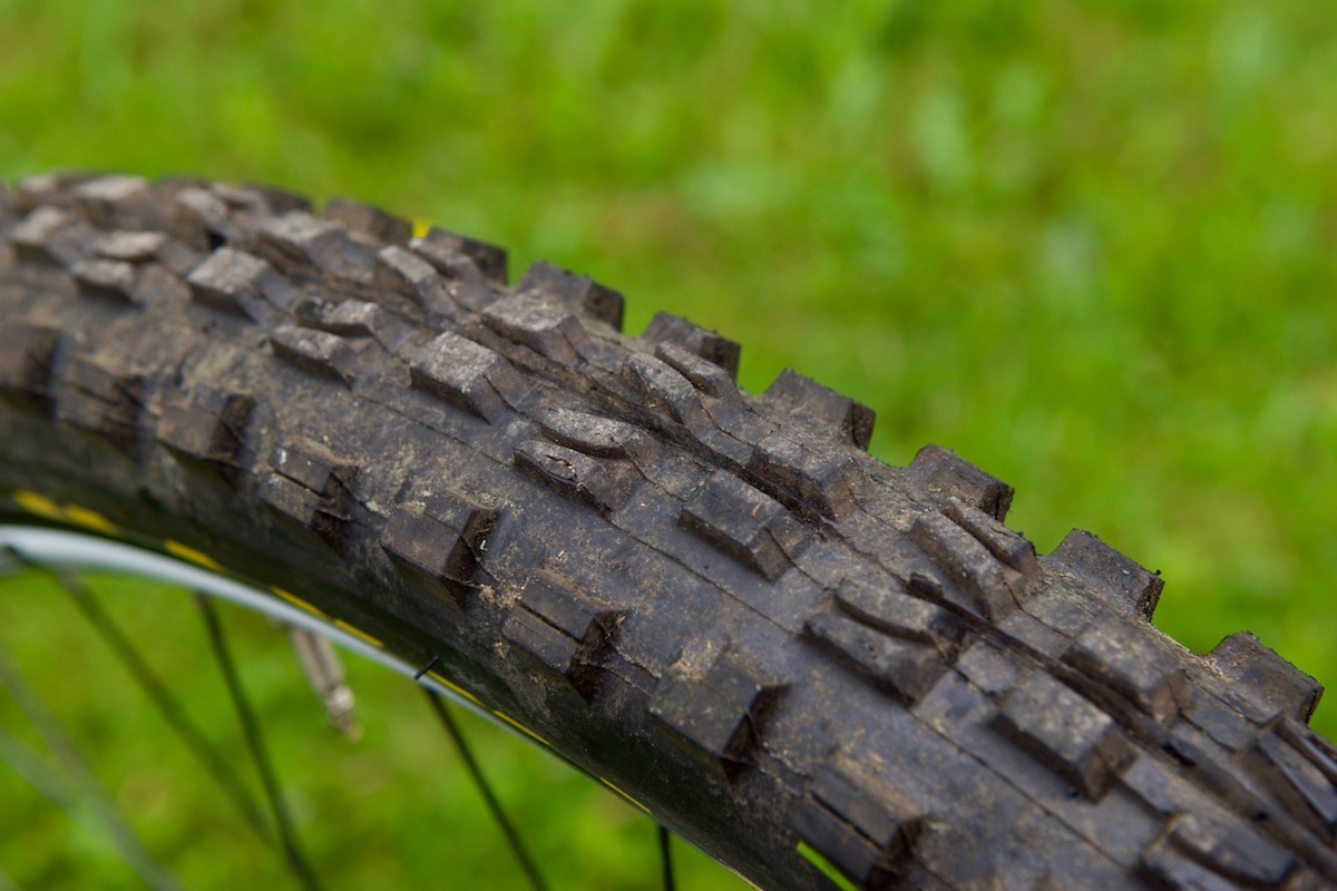 I confess at this point that I’ve only run the Minion as a front tyre, for a number of reasons. I like my front tyres super-grippy, that the extra weight wouldn’t be as much of a problem there, and any putatively softer compound wouldn’t wear as fast. It set up perfectly easily tubeless; beads seated and remaining inflated with the minimum of hassle.
